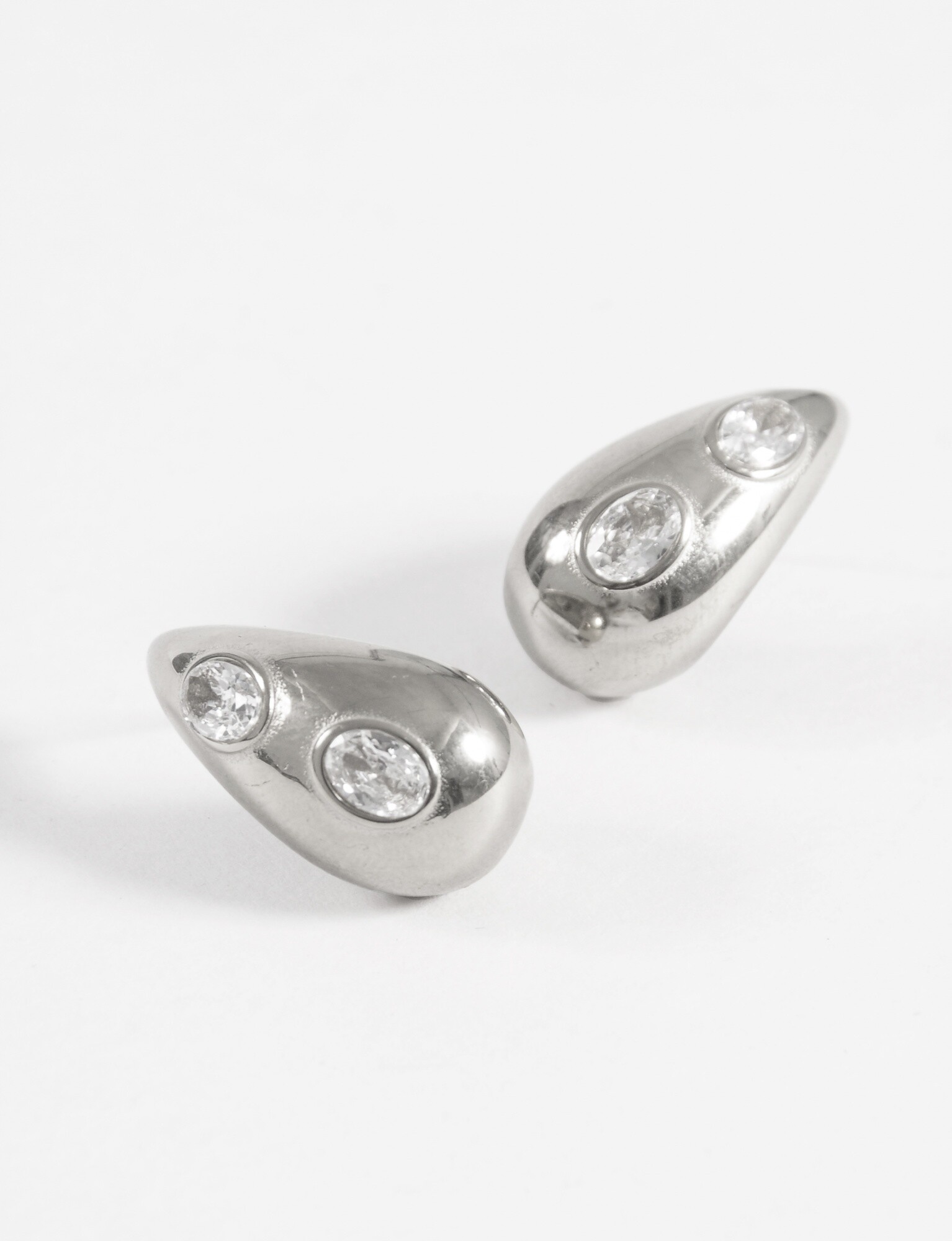 - Aros de acero en forma de gota con detalle de strass.
