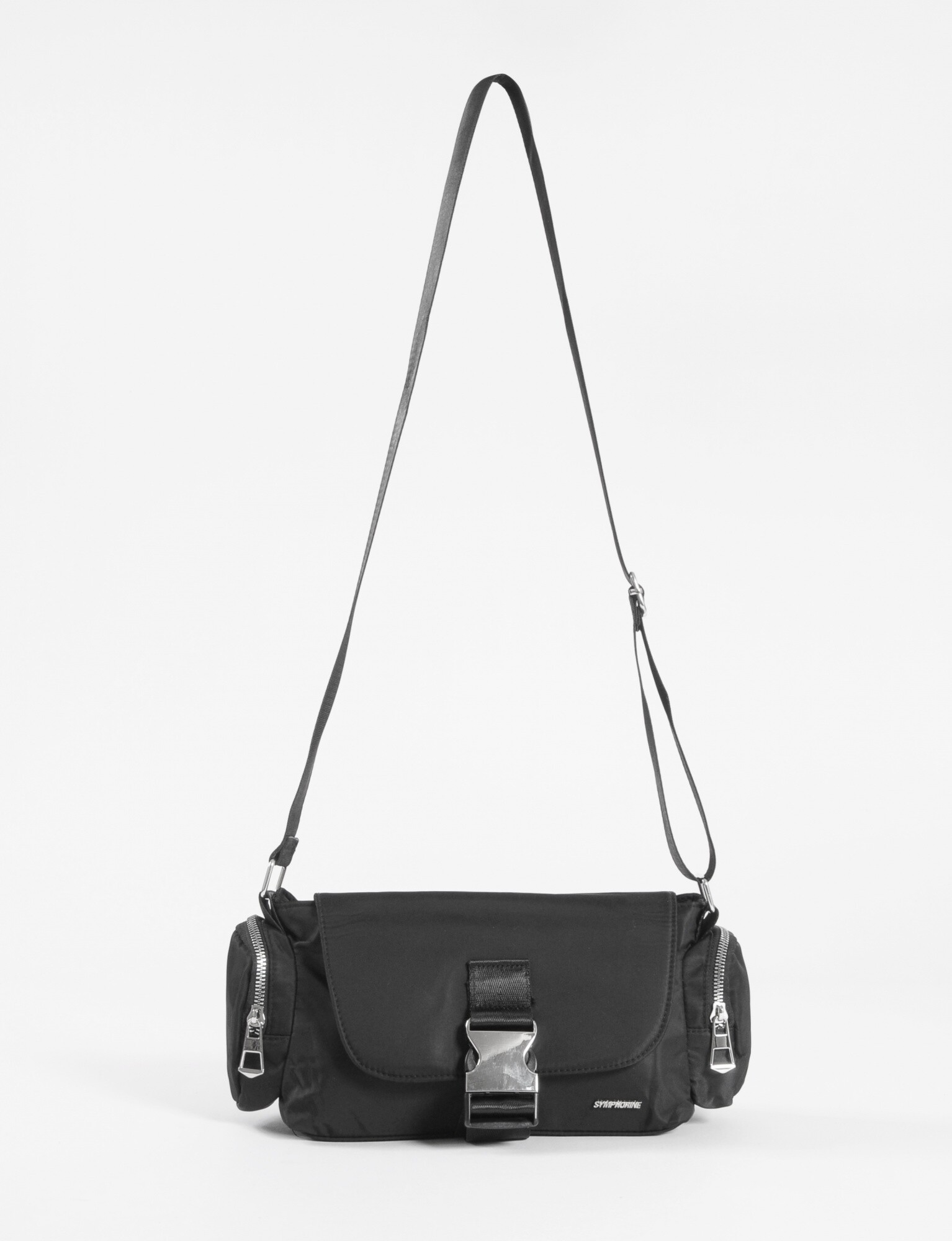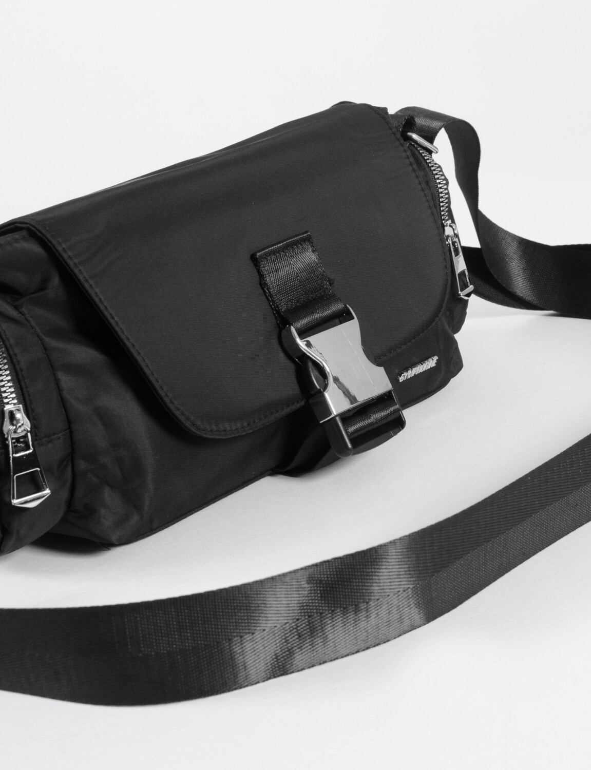 NEW Bandolera de tela con tapa y hebilla - negro