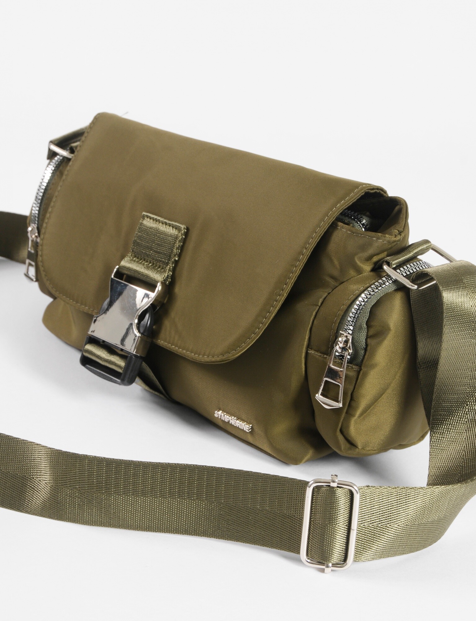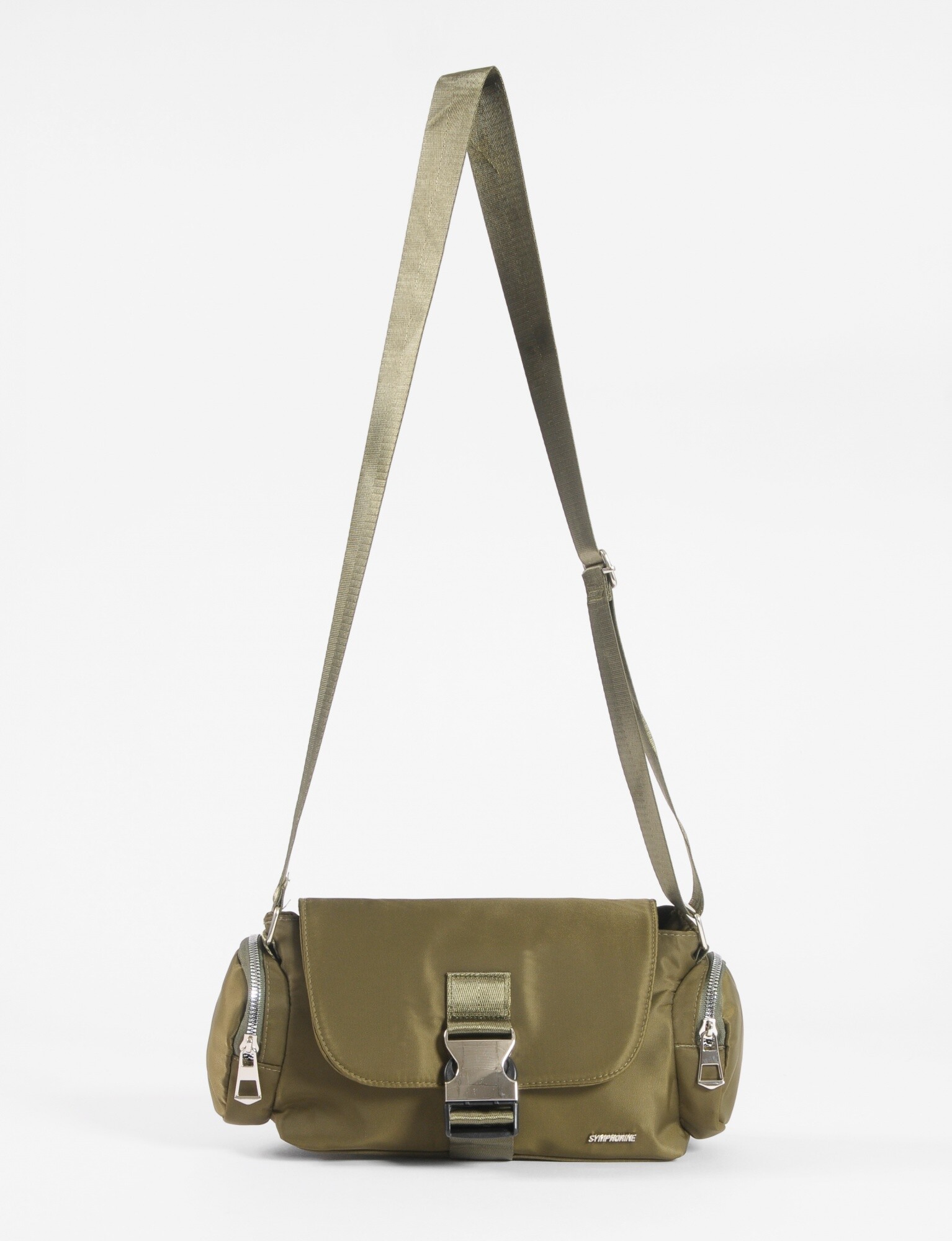NEW Bandolera de tela con tapa y hebilla - verde