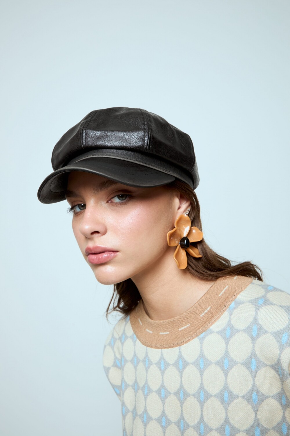 - Boina con visera estilo cap de cuero vegano.
