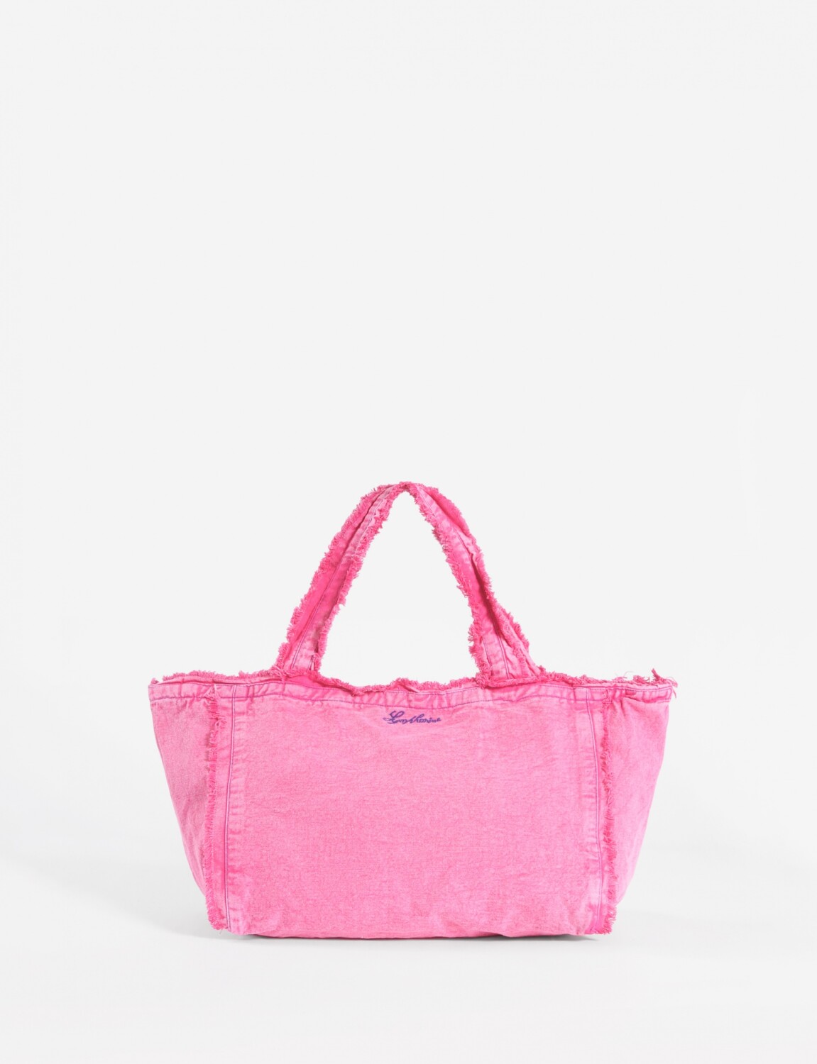 - Bolso de playa con efecto lavado y terminaciones desflecadas.