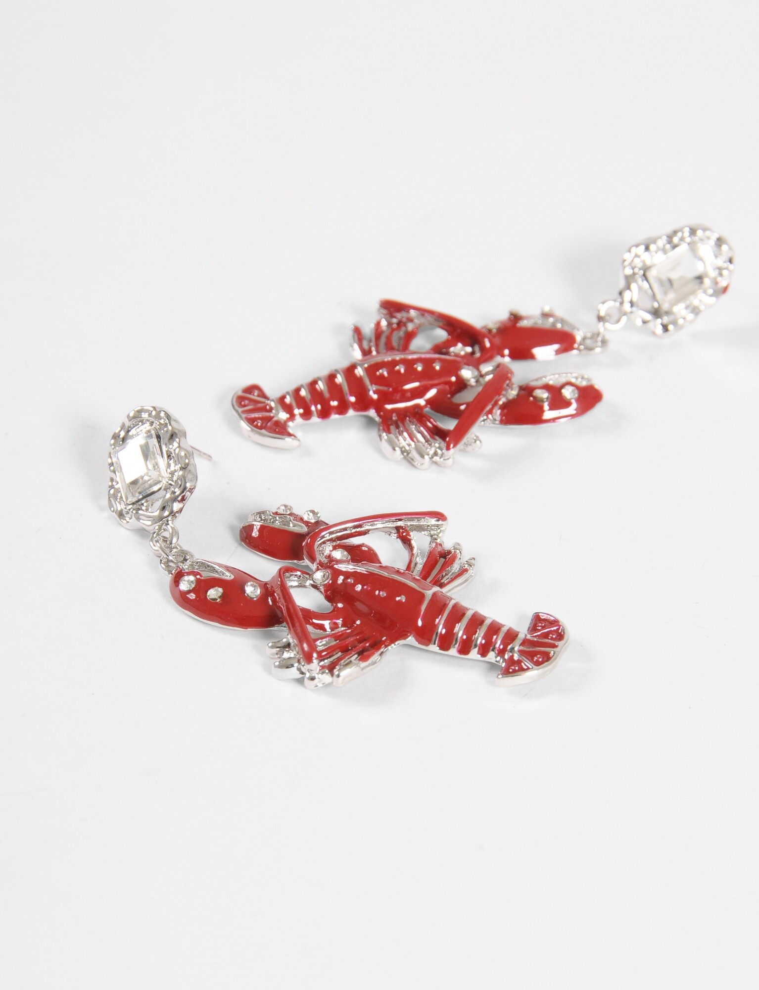 - Caravanas llamativas con dije de langosta.