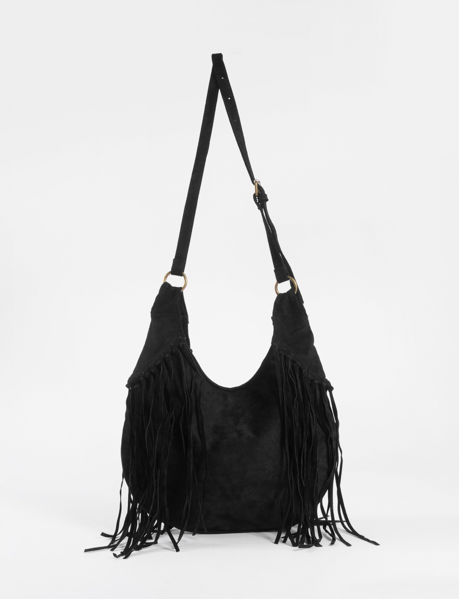 Nuevos NEW Cartera bandolera suede con flecos - negro