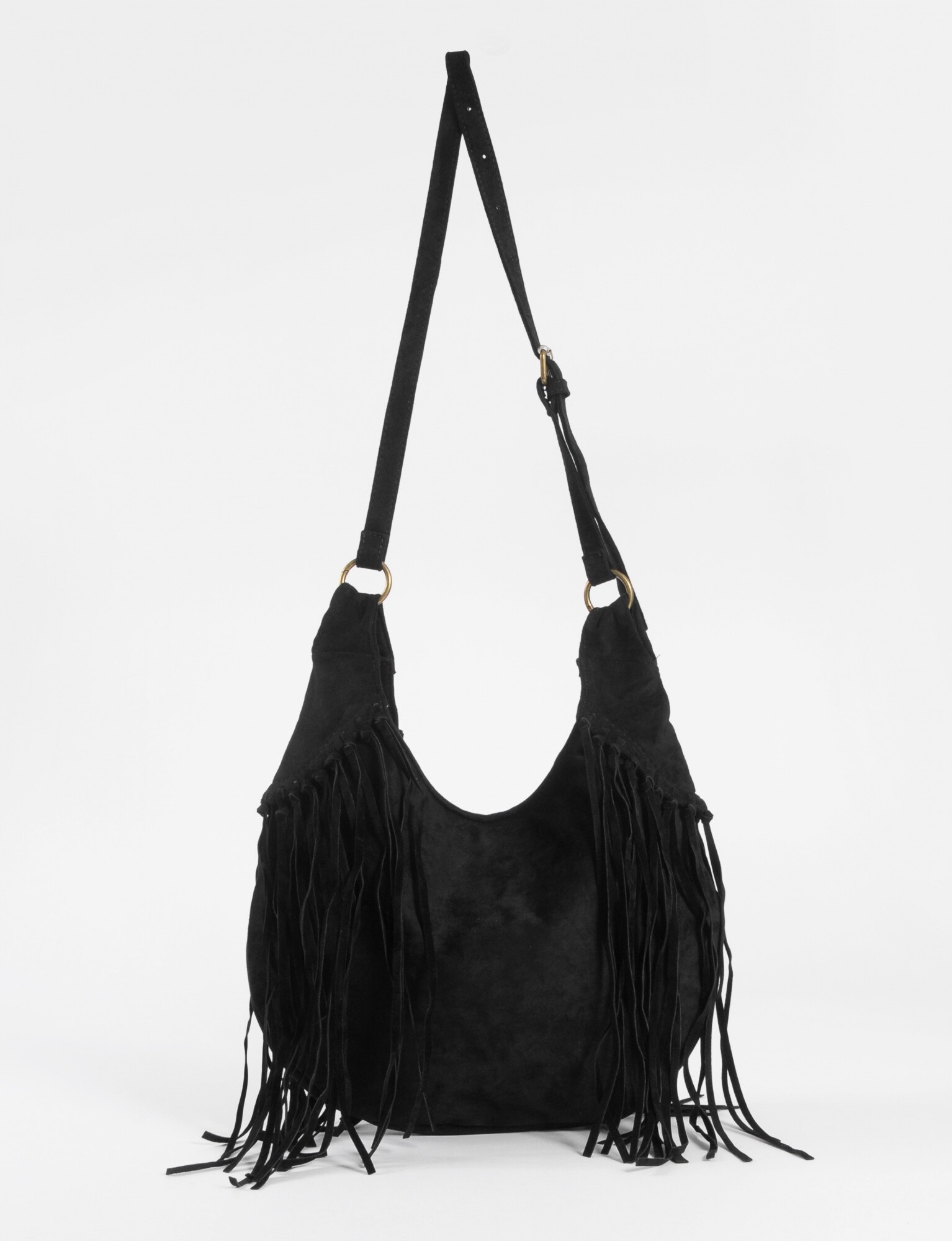 NEW Cartera bandolera suede con flecos - negro