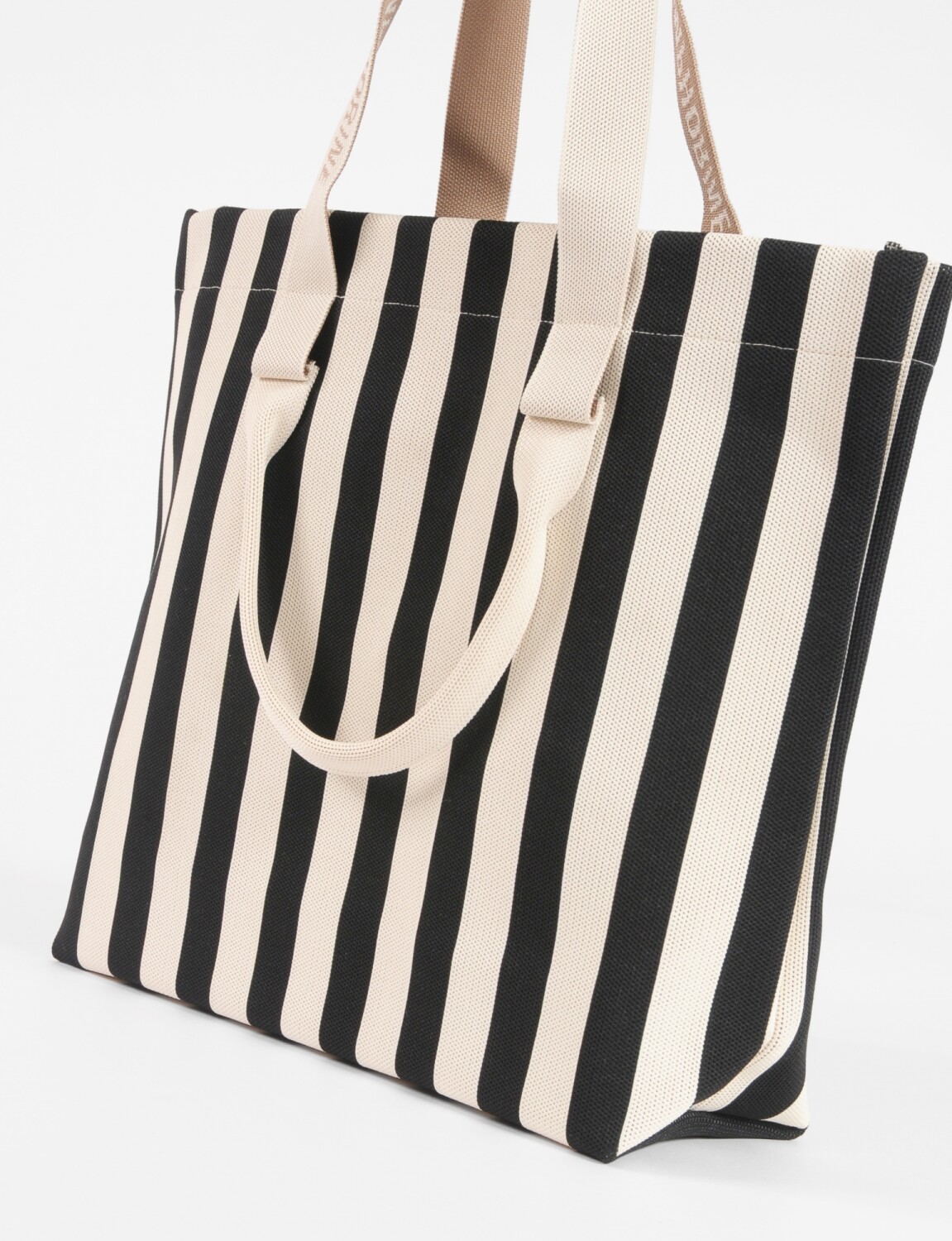 - Bolso con cierre en compartimento principal, y doble strap, para llevar del hombro.