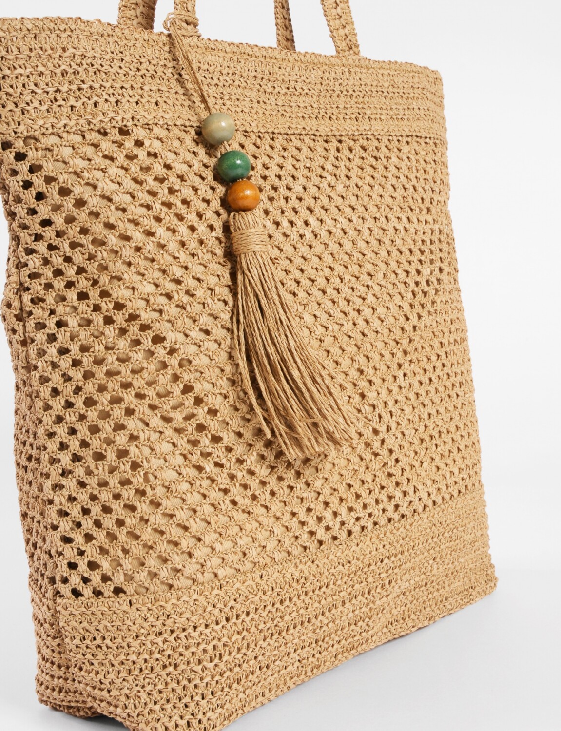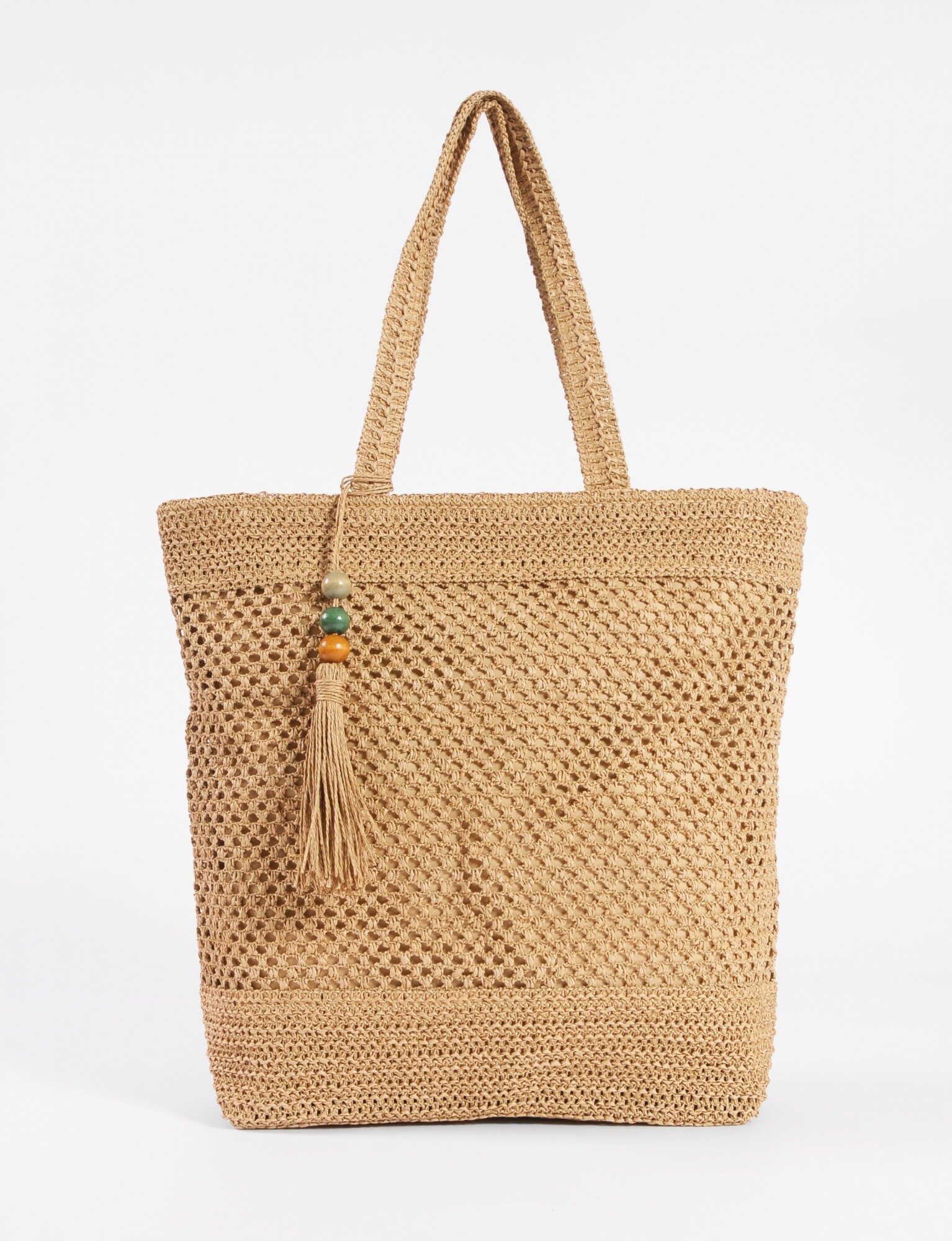 Nuevos NEW Cartera canasto calado con llavero - camel