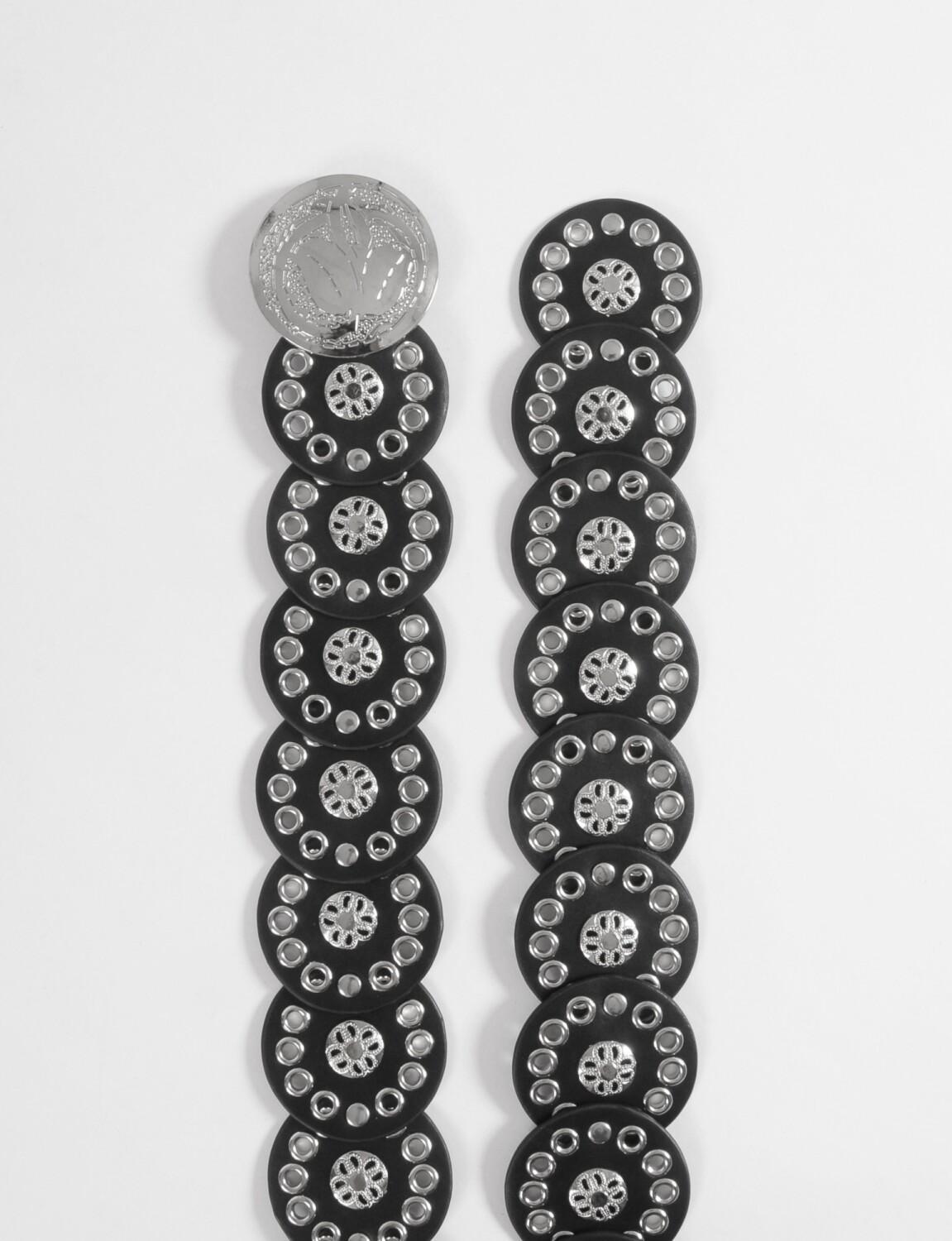 Nuevos NEW Cinturon diseño circular hebilla medalla - negro