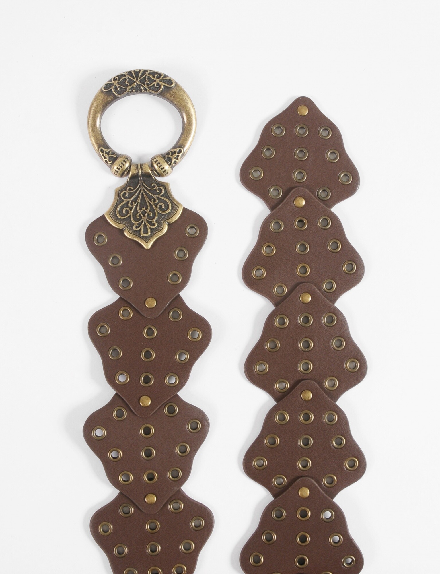 - Cinturón de cuero vegano con hebilla decorativa y detalle de ojalillos.