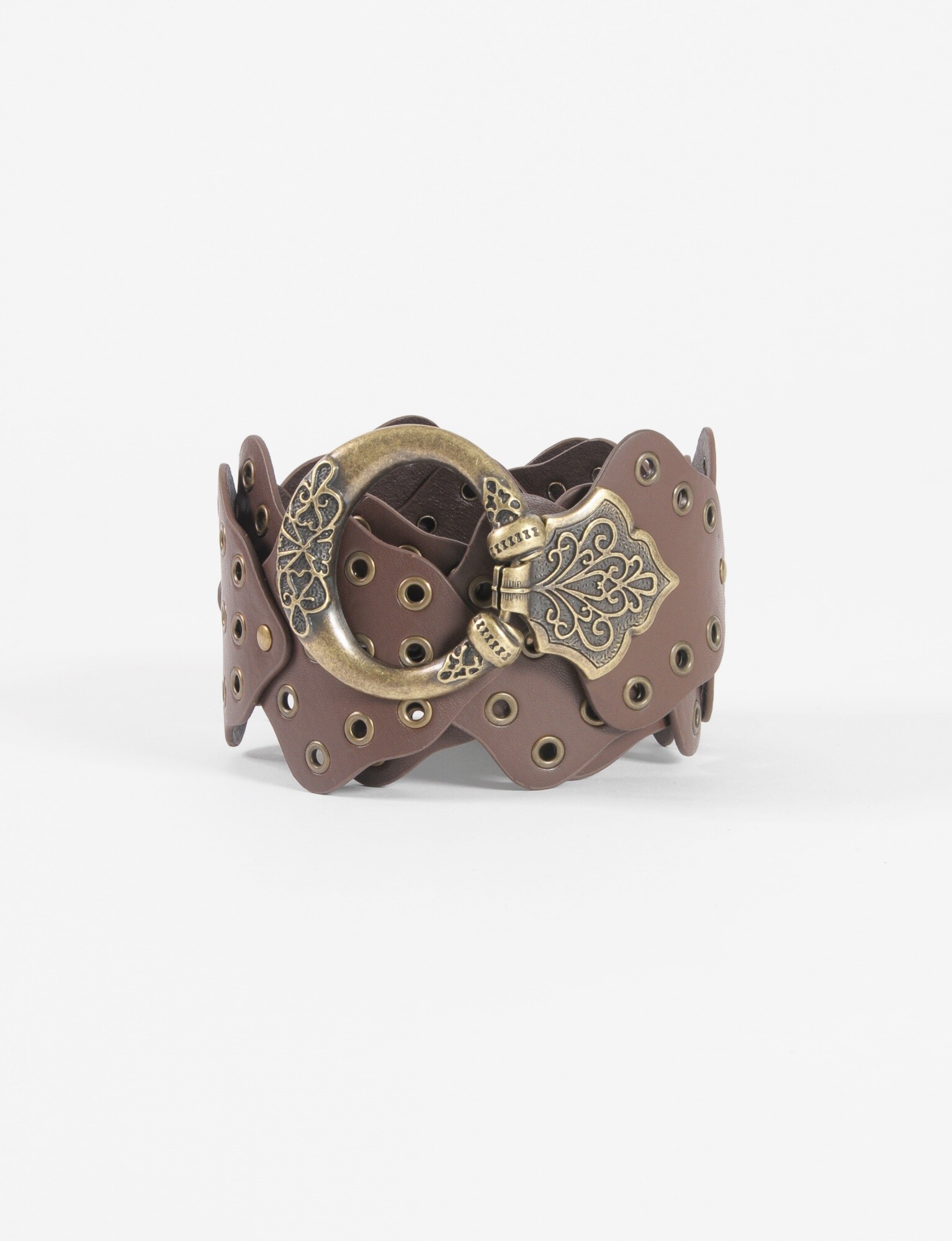 Cinturón hebilla labrada y ojalillos - marrón