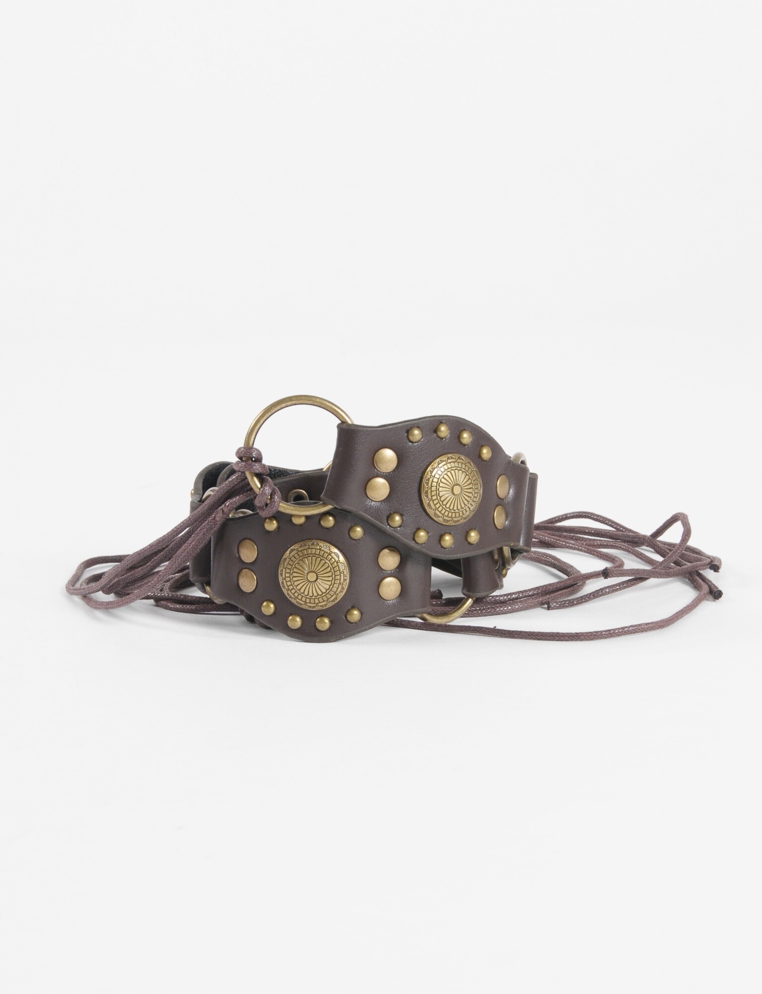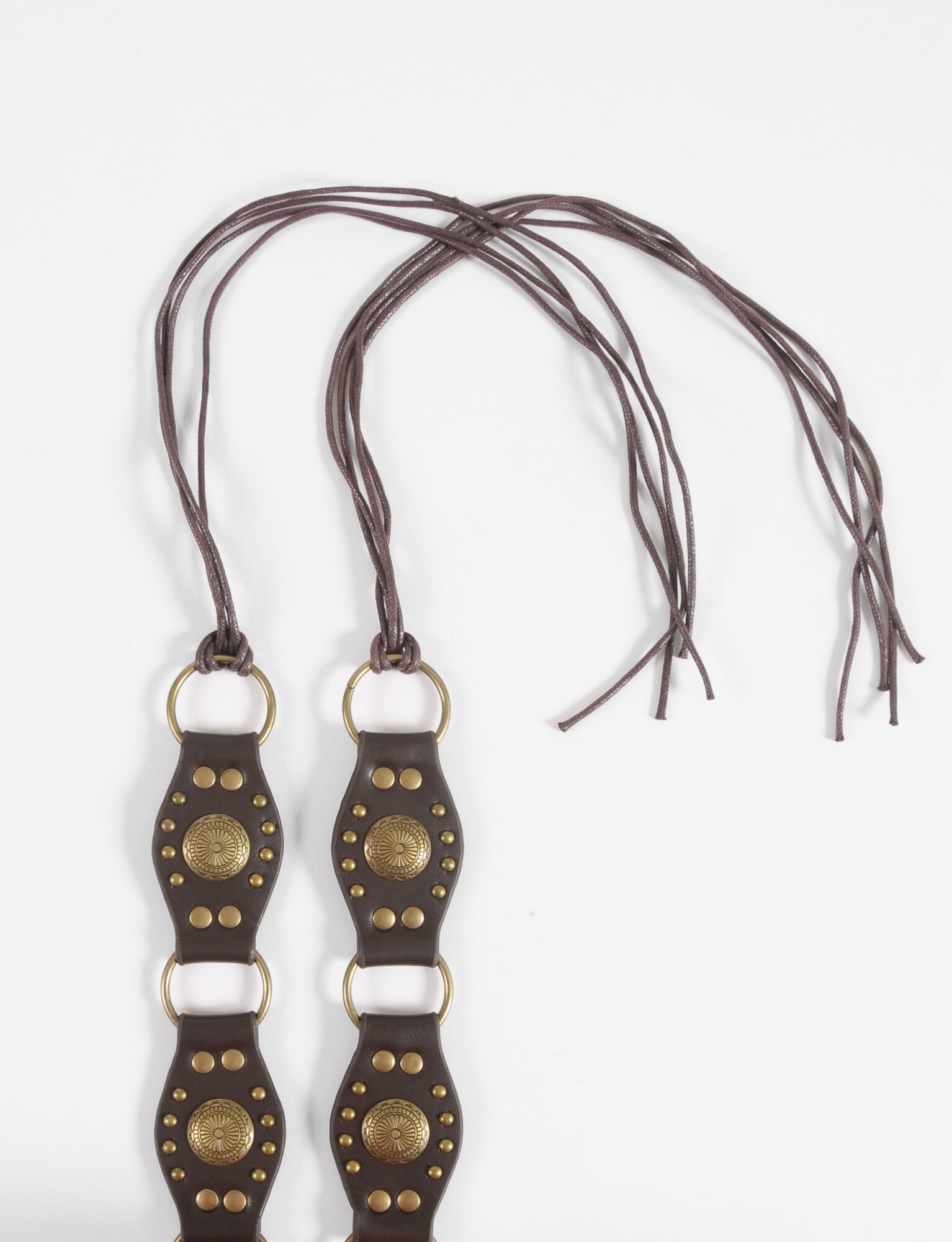 - Cinturón con ojalillos, medalla metálica y cinta decorativa.