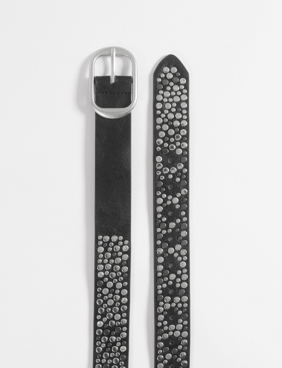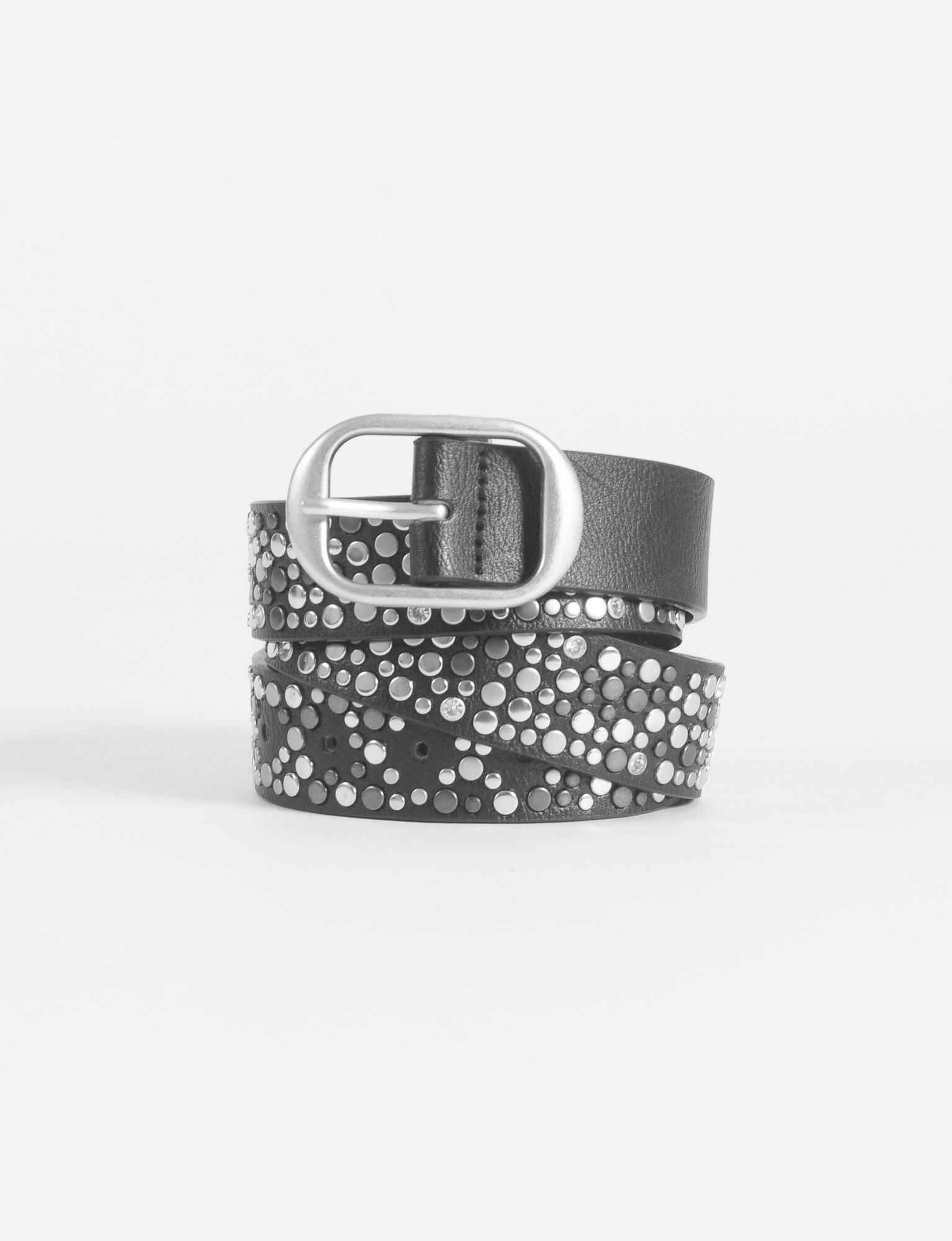 - Cinturón estilo rock con tachas metálicas y hebilla cuadrada.
