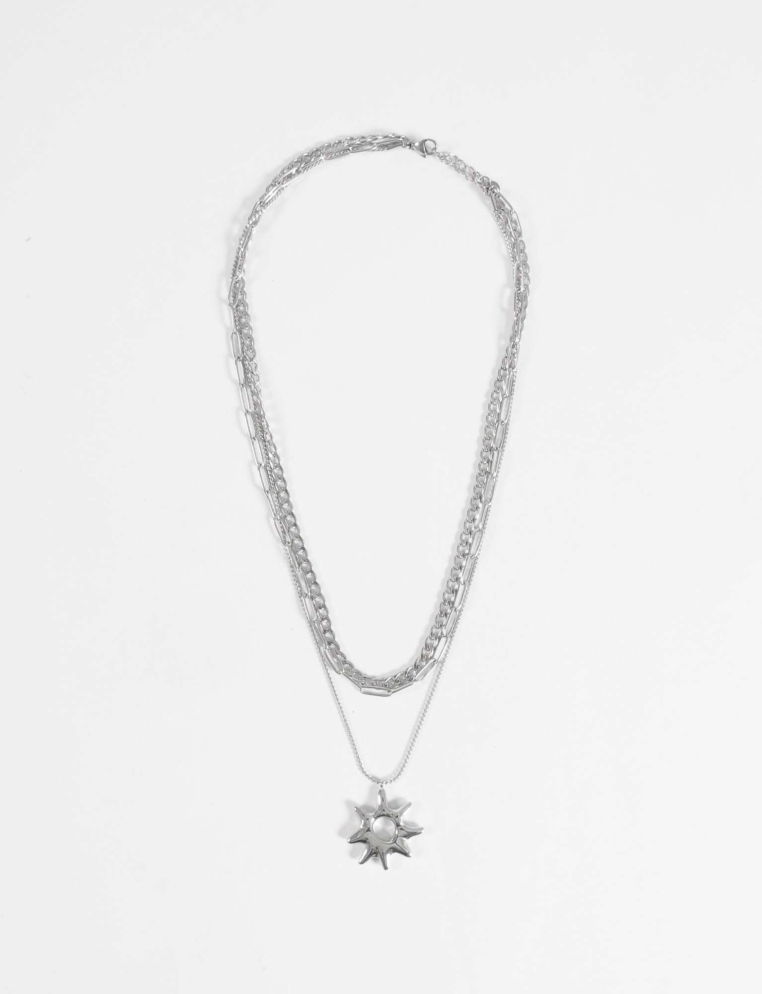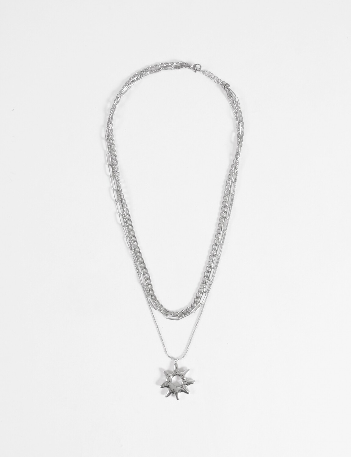 Nuevos NEW Collar triple cadena dije sol acero - plateado