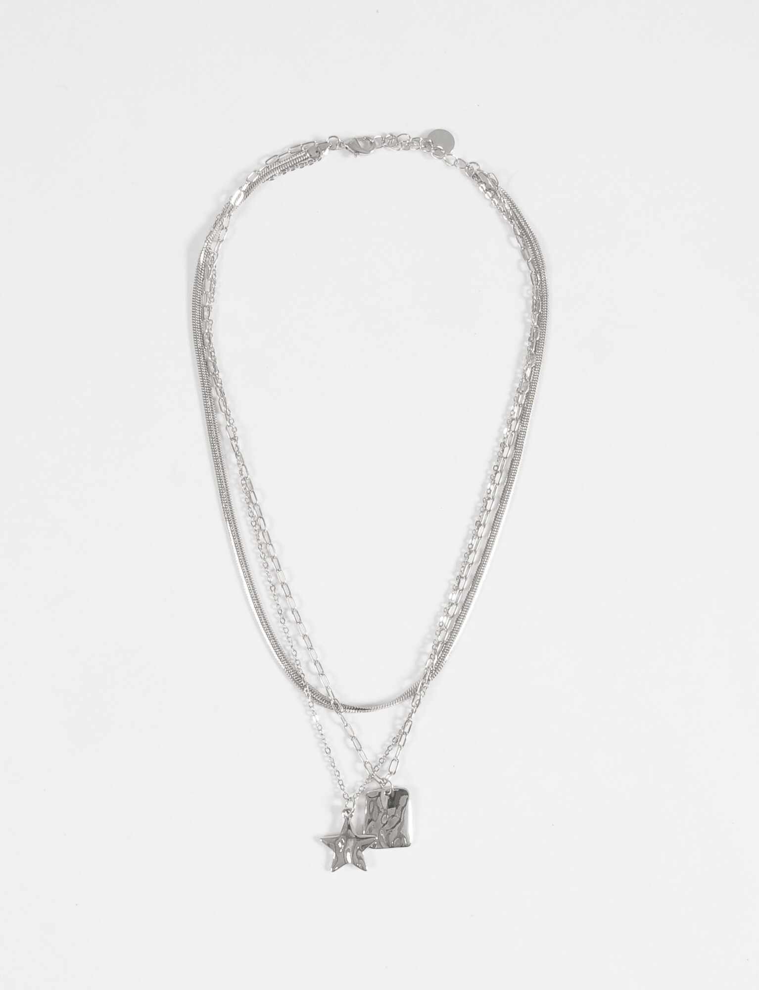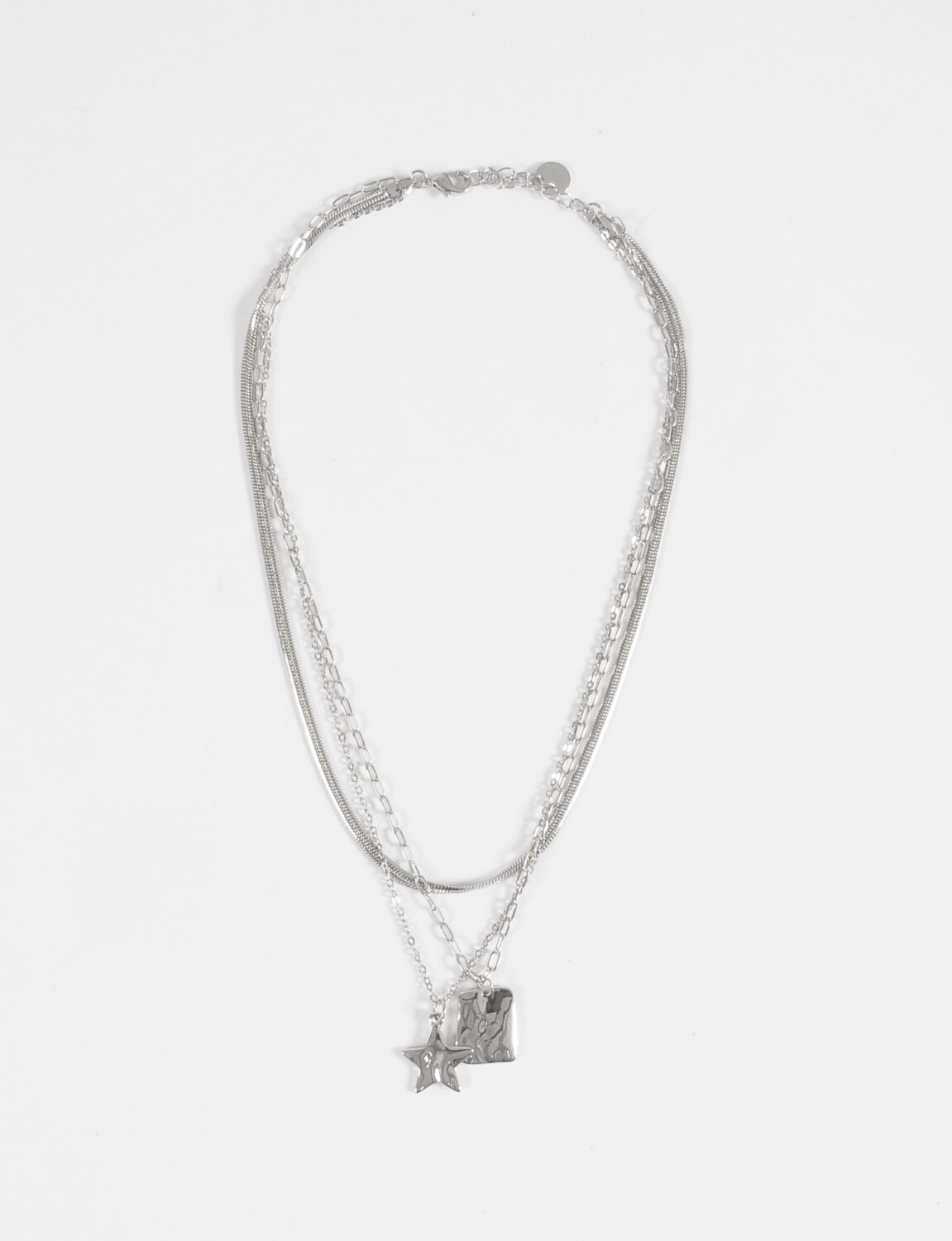 - Collar tipo cascada con tres cadenas y dos dijes.
