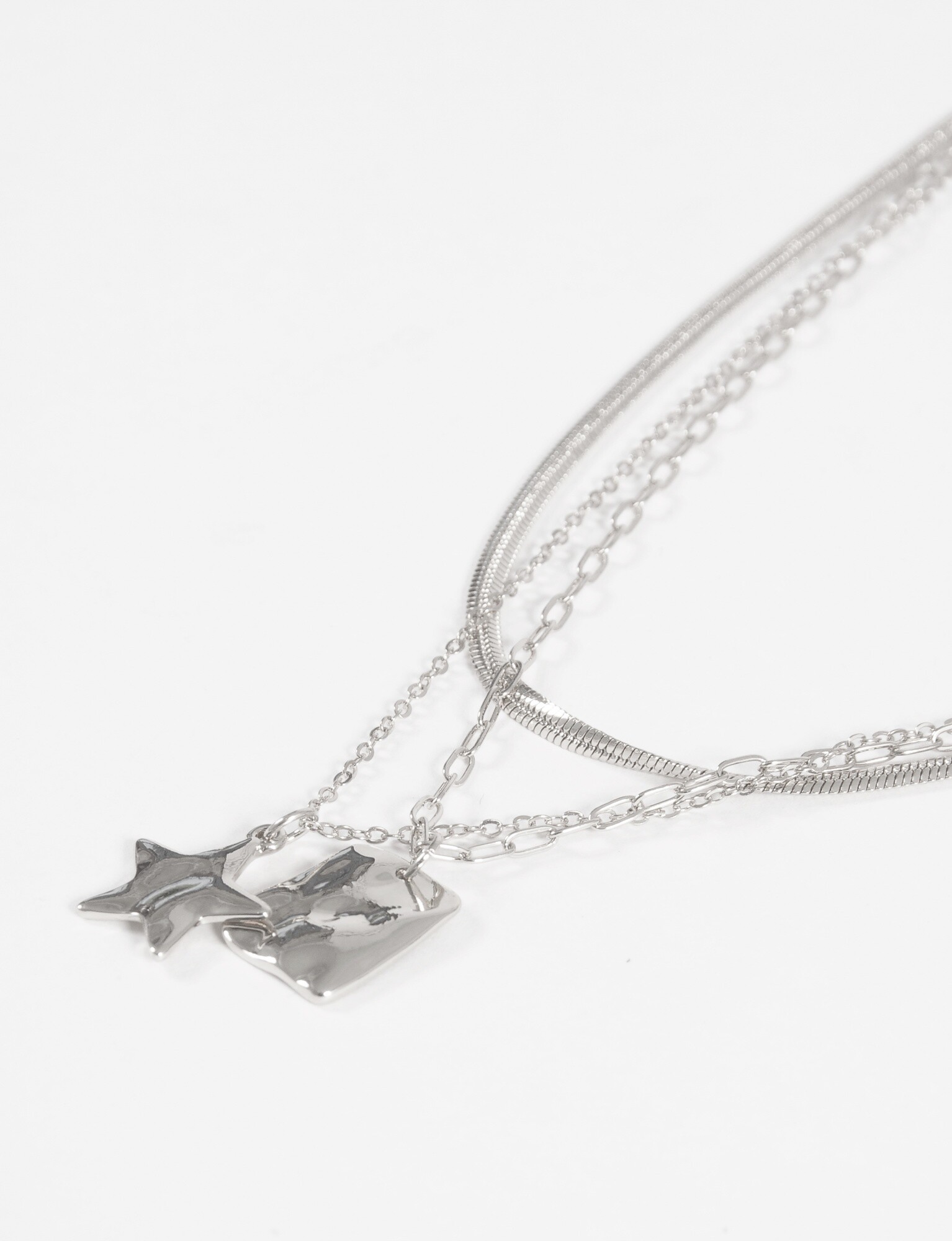 Nuevos NEW Collar triple cadena dijes - plateado