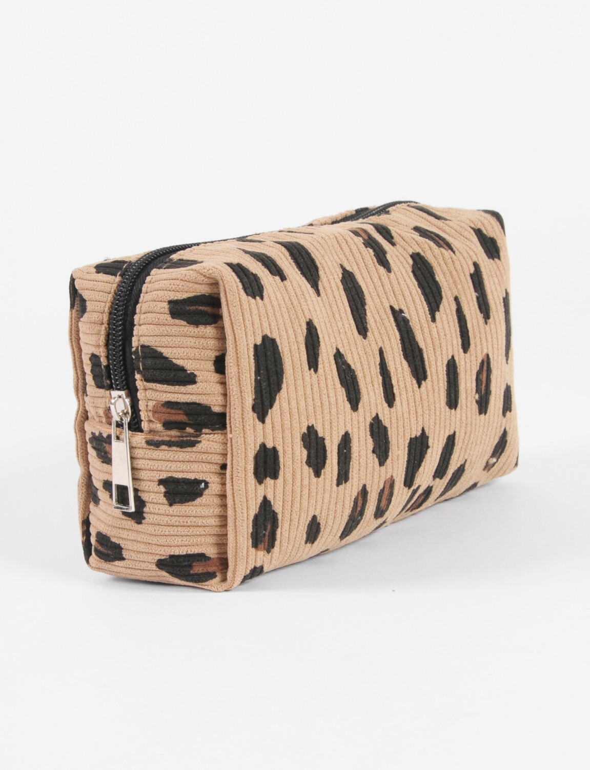 - Estuche de tela con estampa animal print simple.