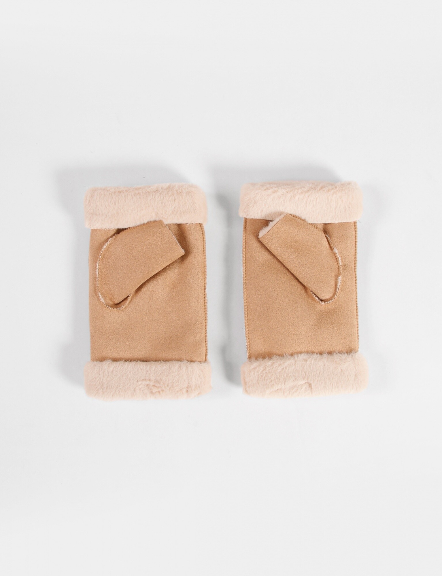 - Guantes tipo mitón con textura suave y abrigados.