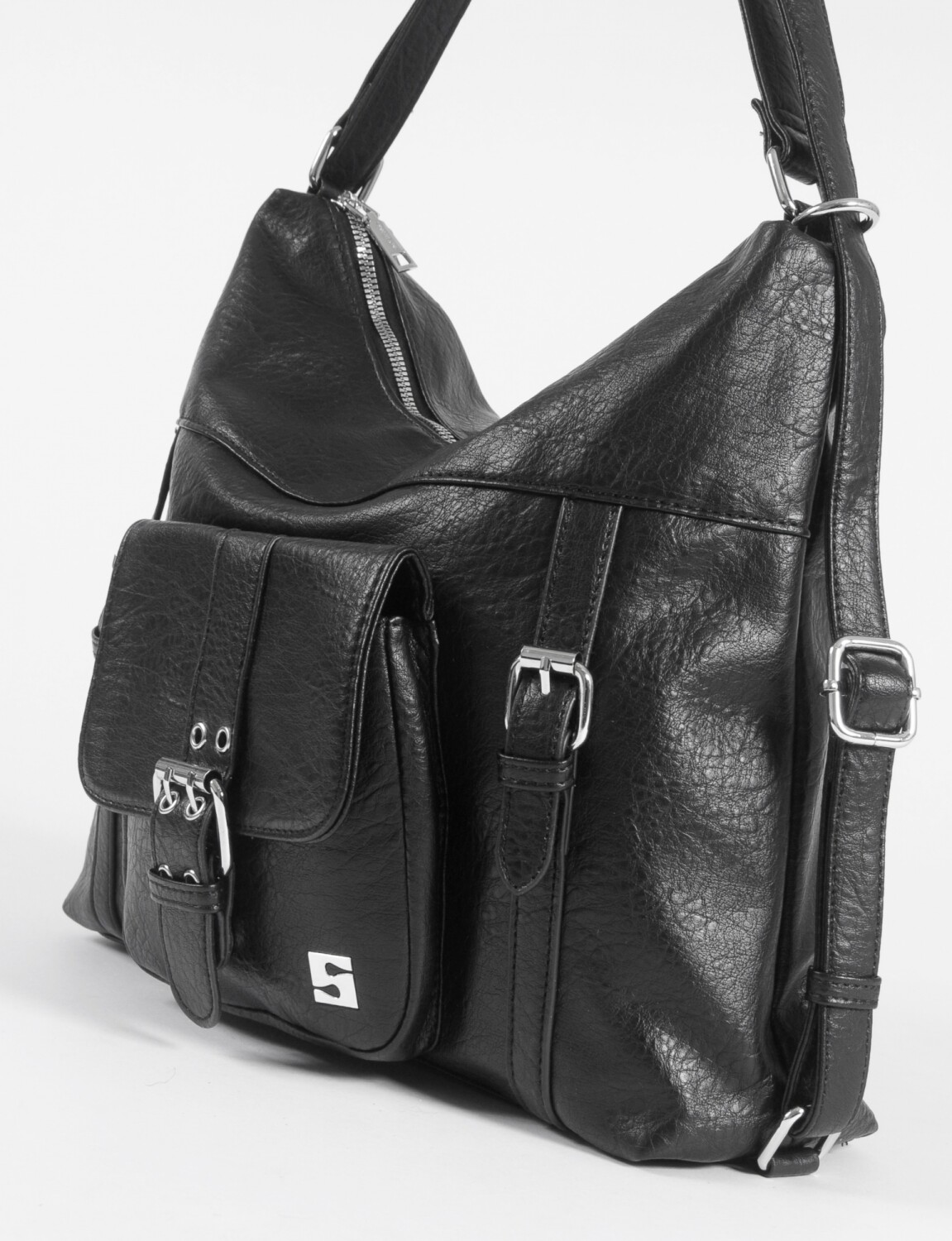 - Cartera que puede usarse como hobo o como mochila, con correas ajustables.