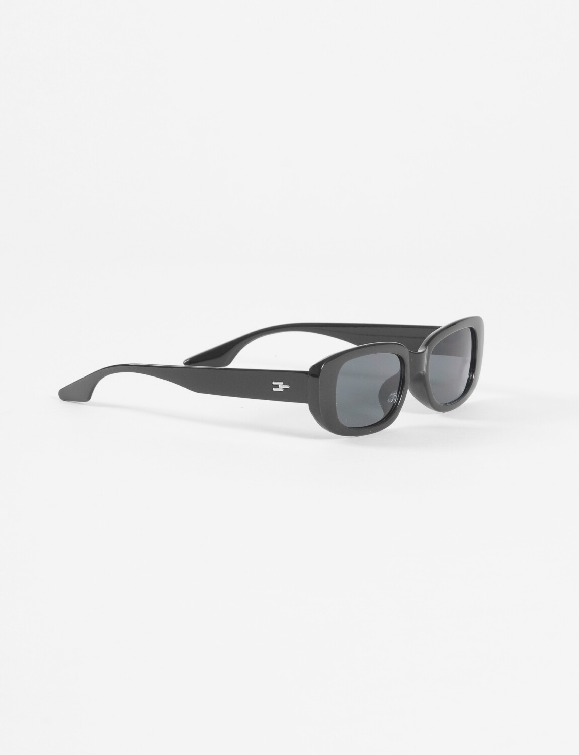 - Lentes de sol con armazón voluminoso y diseño redondeado.