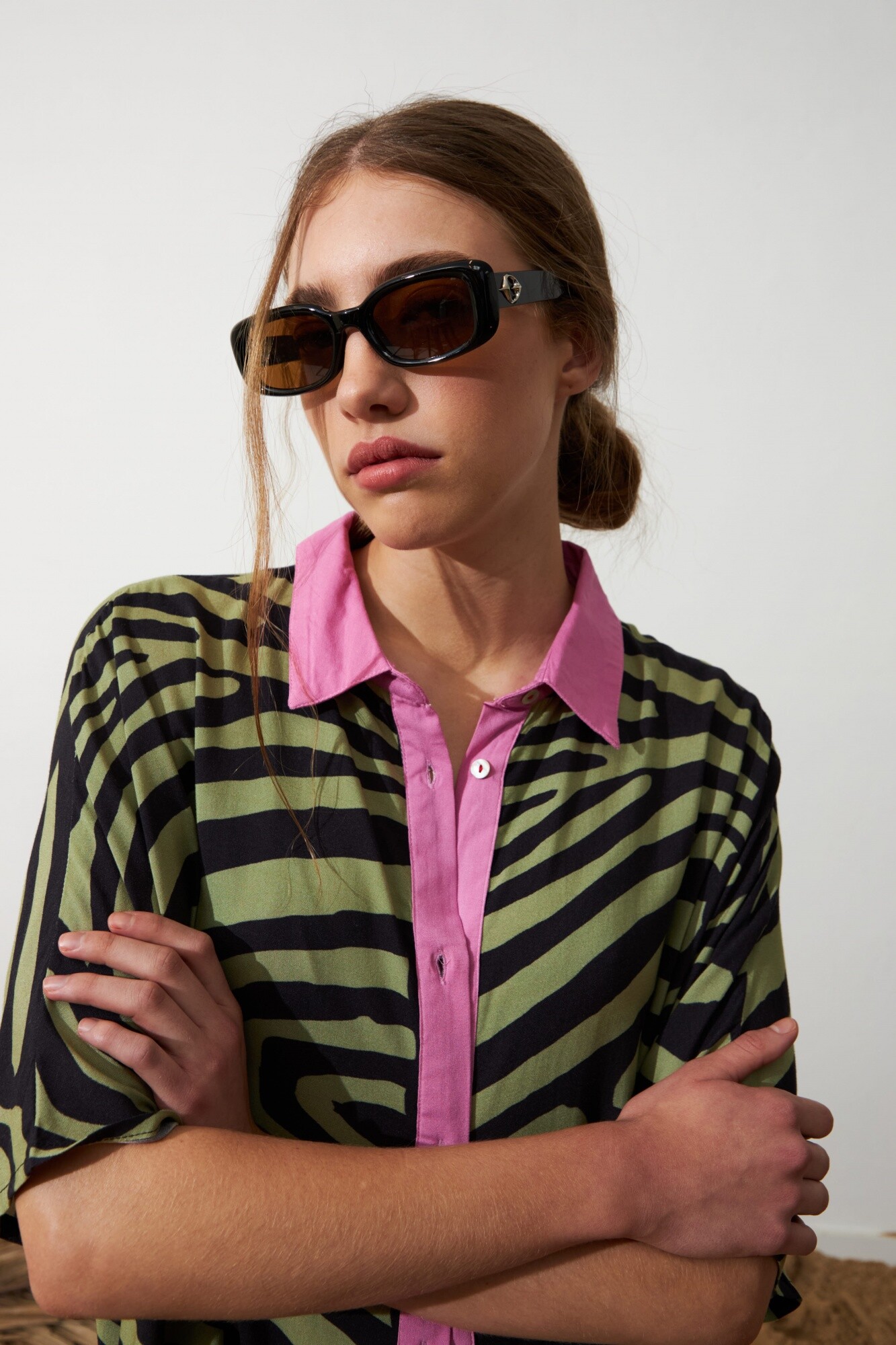 - Lentes de sol de armazón cuadrado con marco ancho y estilo retro.