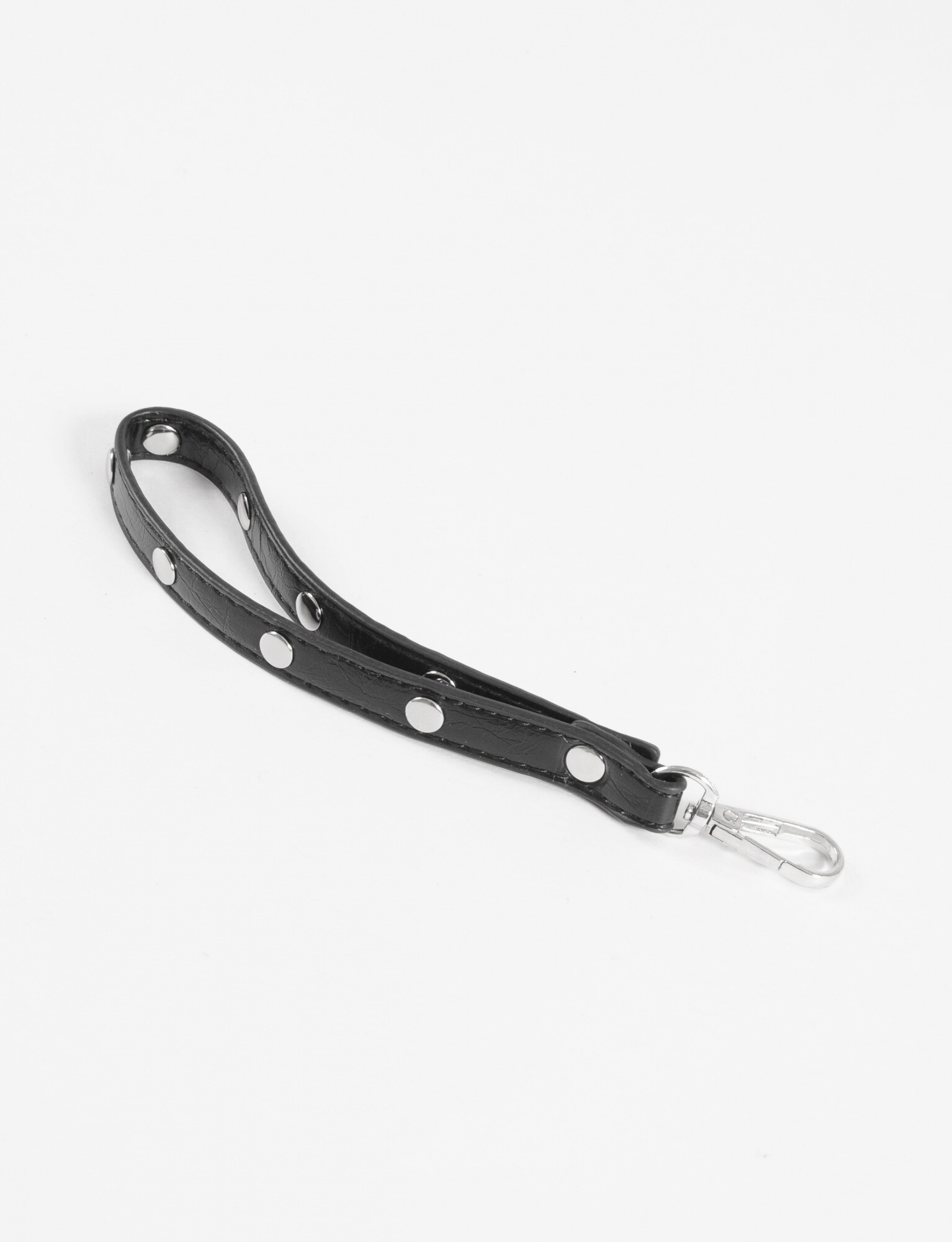 - Llavero de PU con tachas metálicas y argolla resistente.