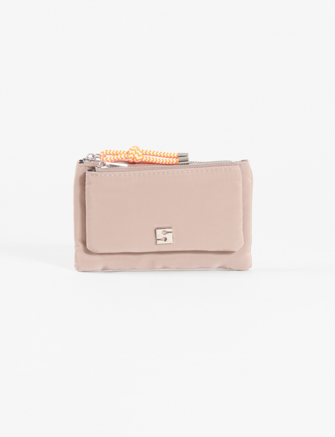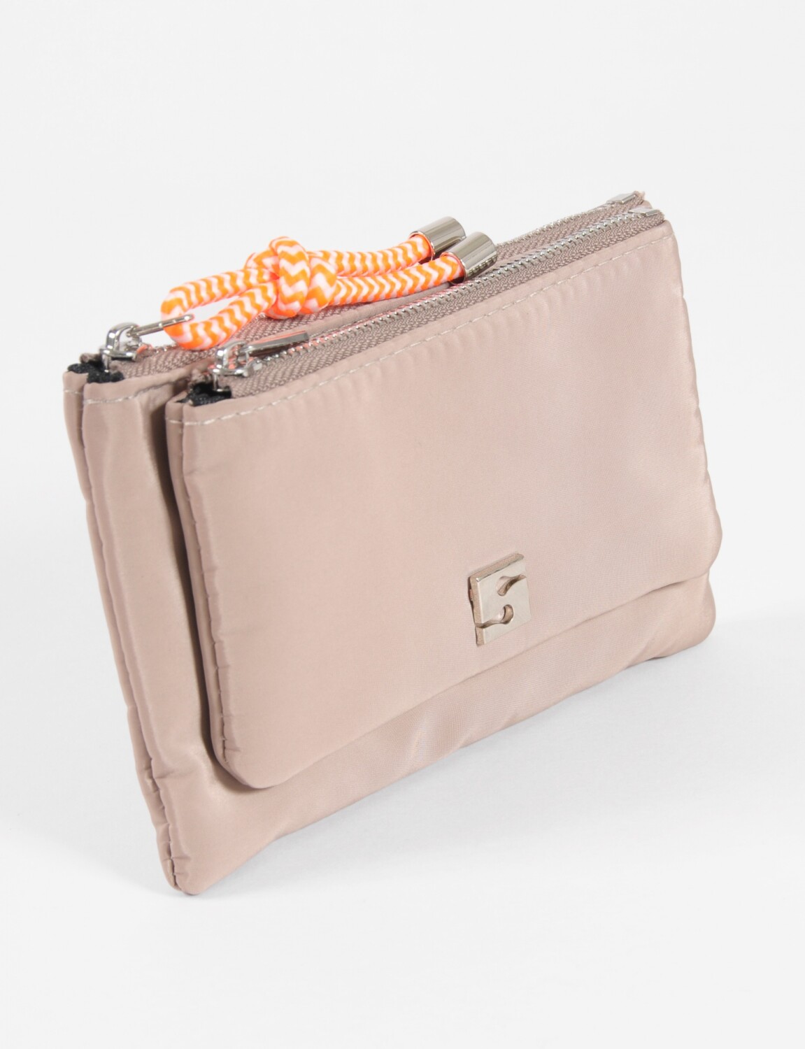 - Monedero de tela ligero con cierre seguro y correa de muñeca.