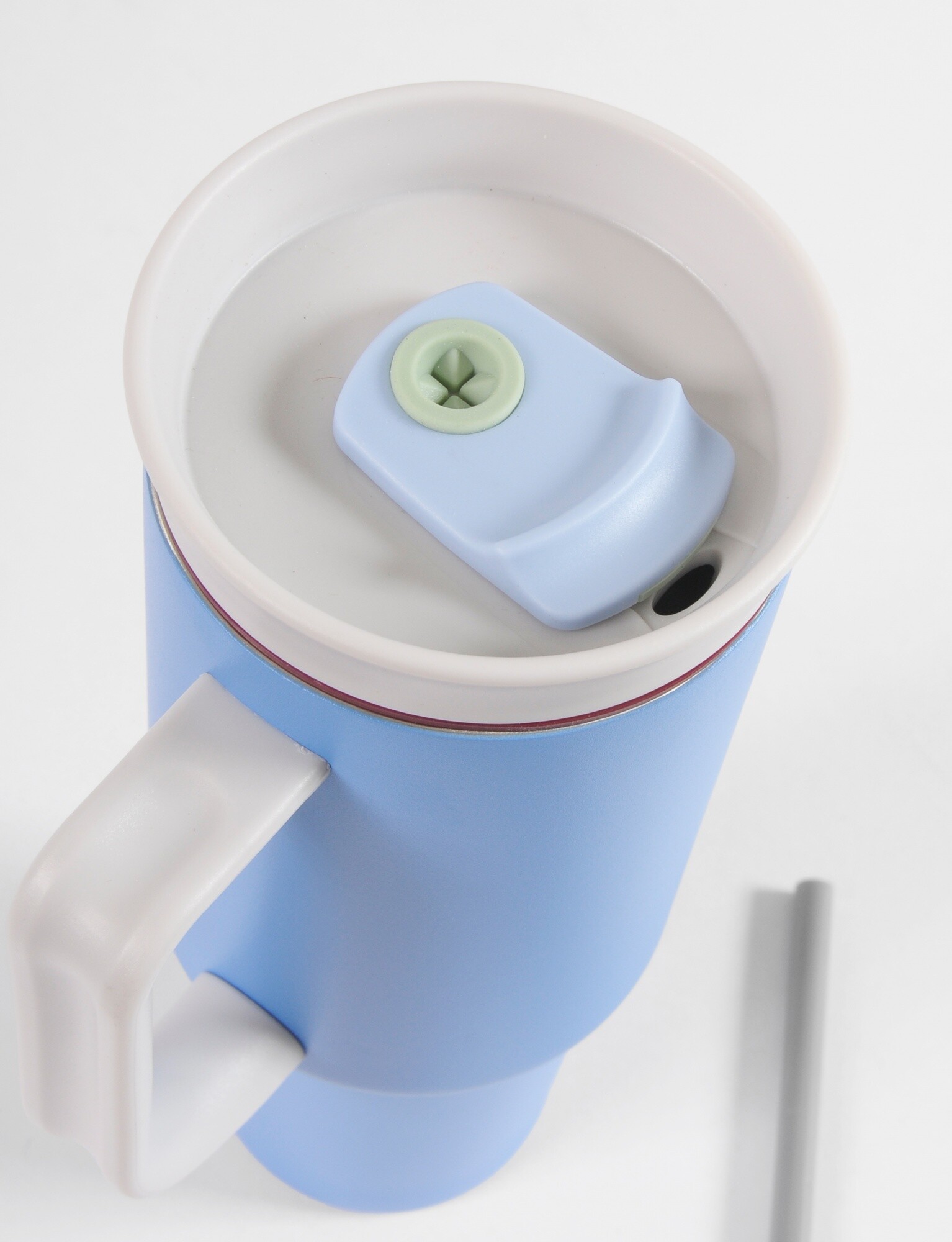 - Vaso bicolor de acero con pajita.