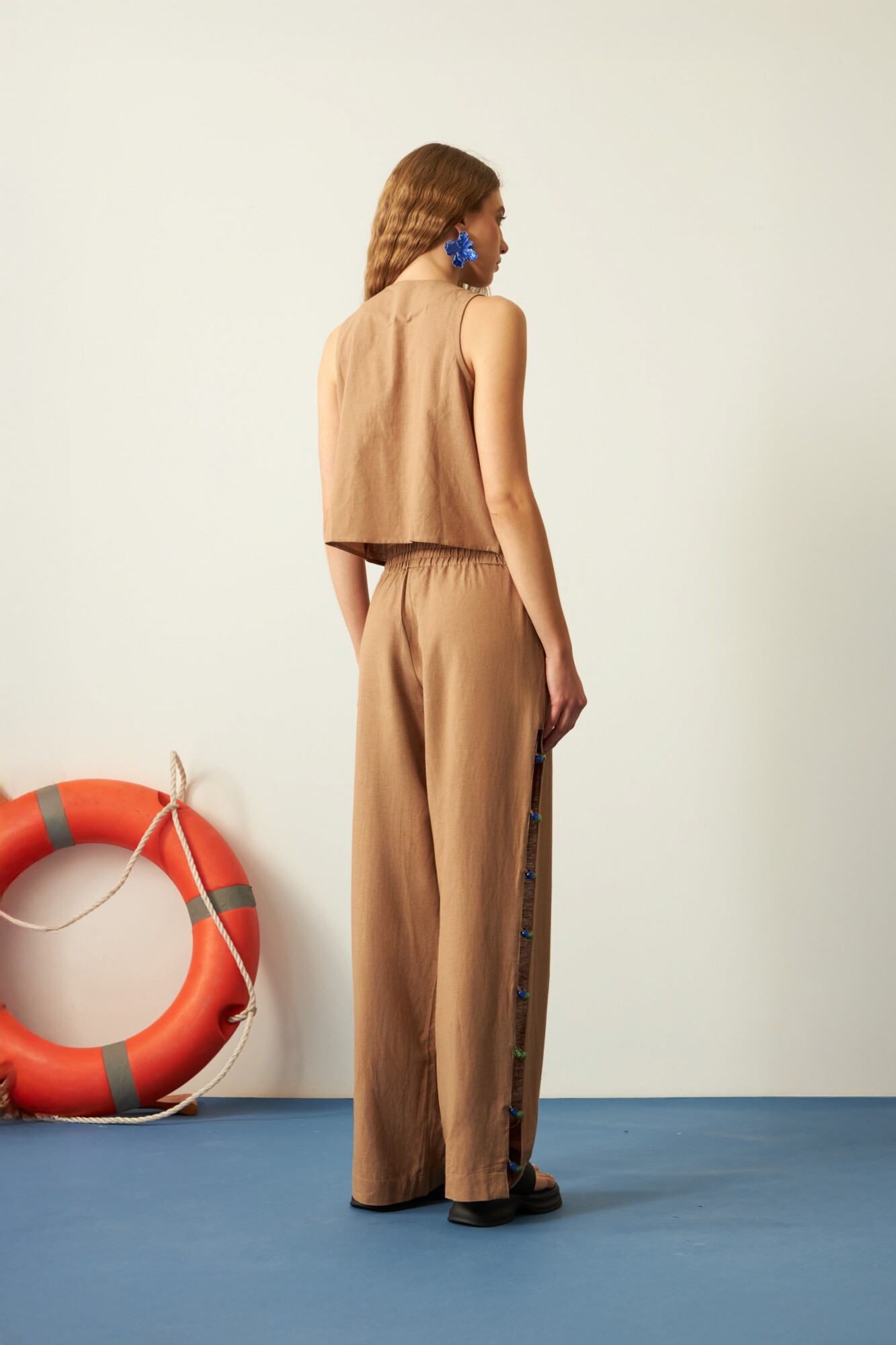 - Pantalón con mostacillas en cortes laterales.