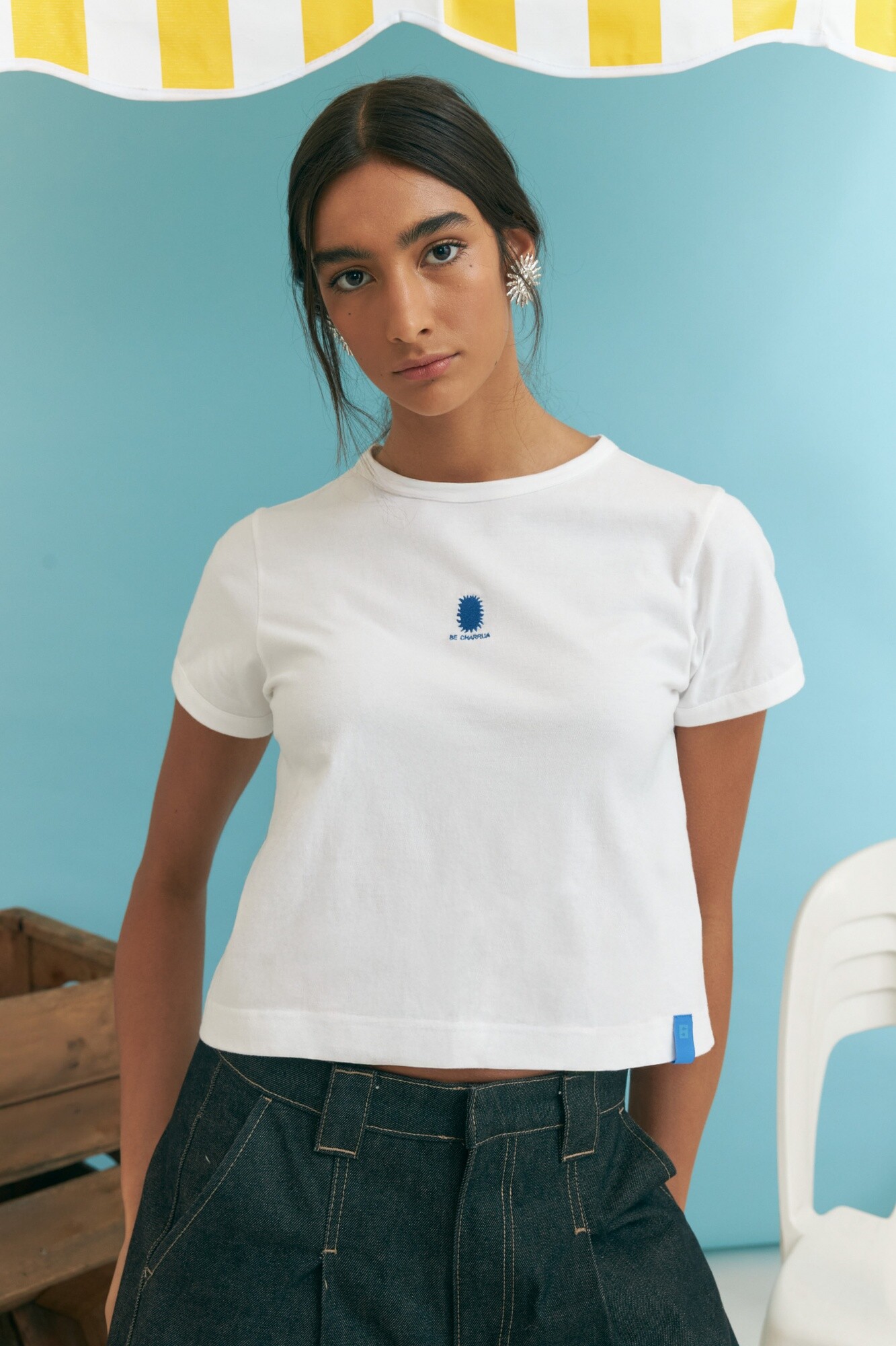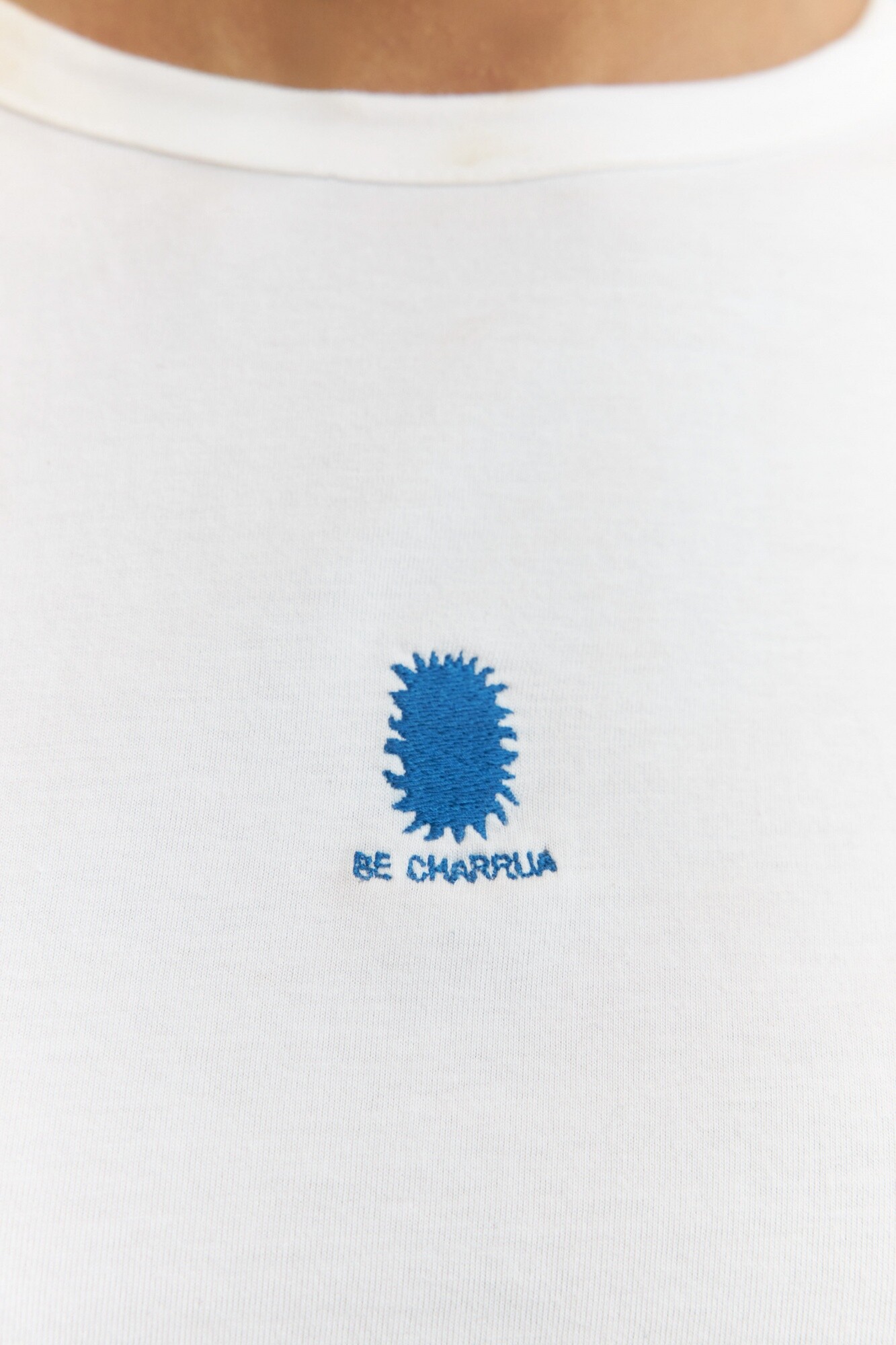 - Remera de algodón con estampa Be Charrúa en la parte frontal.