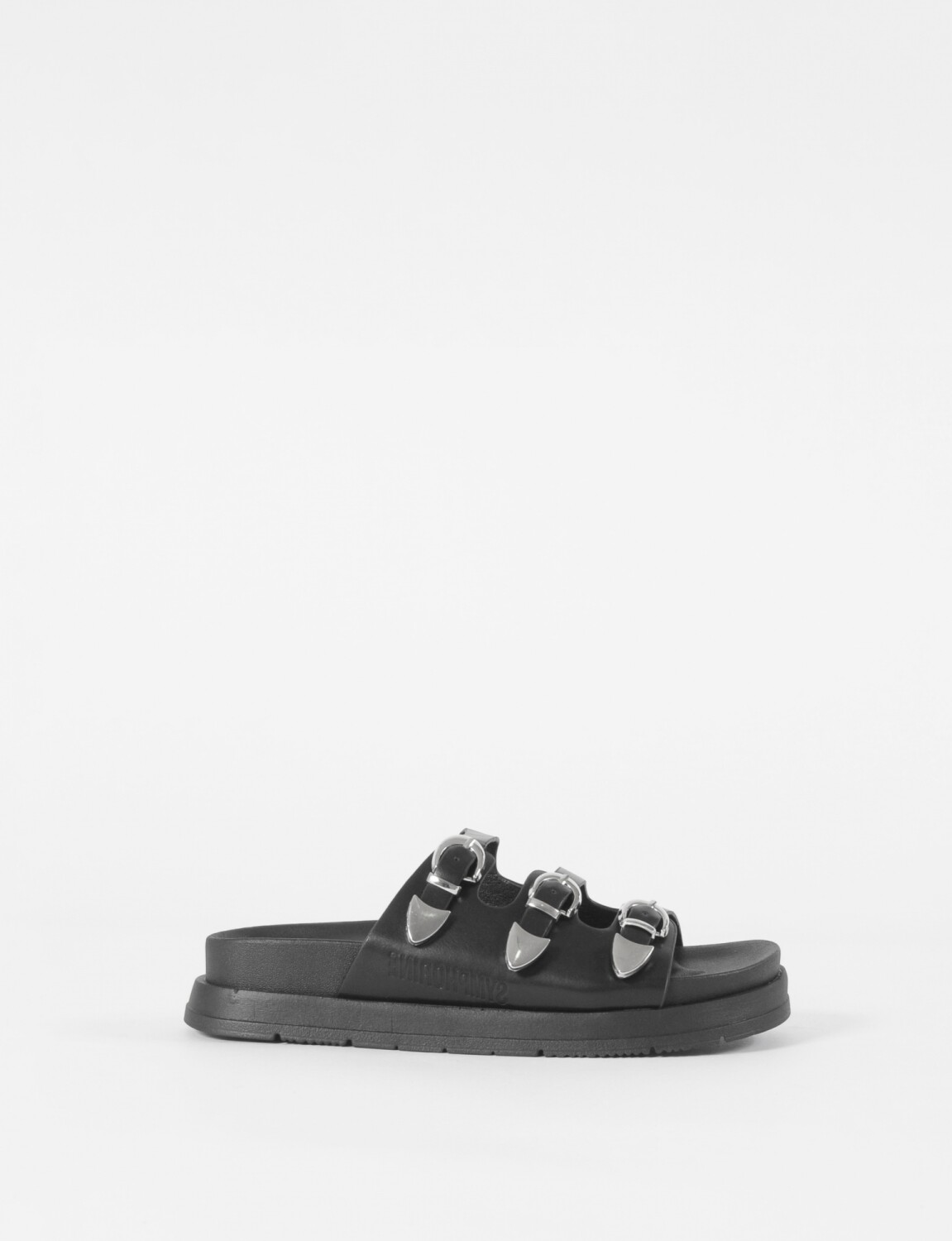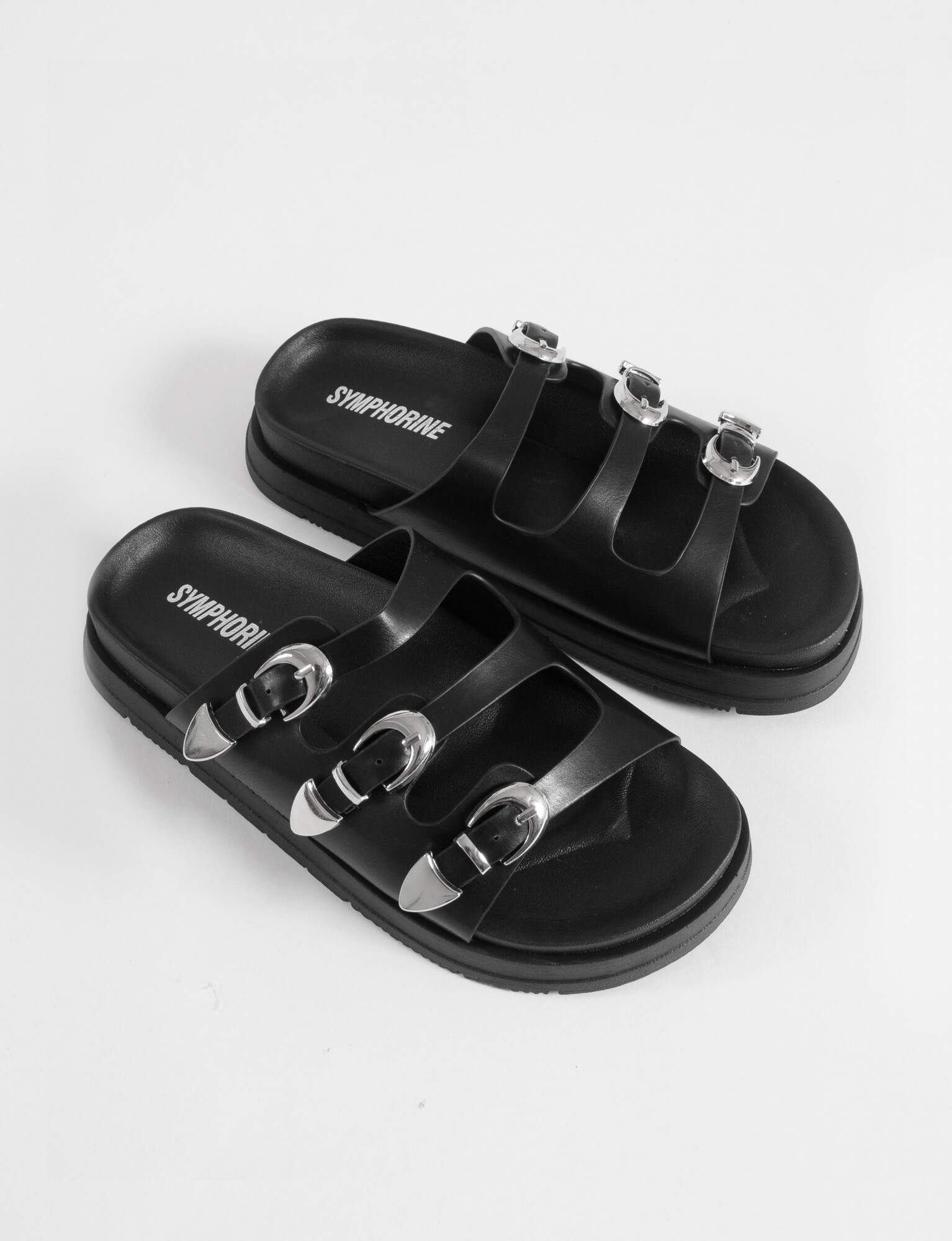 - Sandalia con tiras delgadas y hebillas.