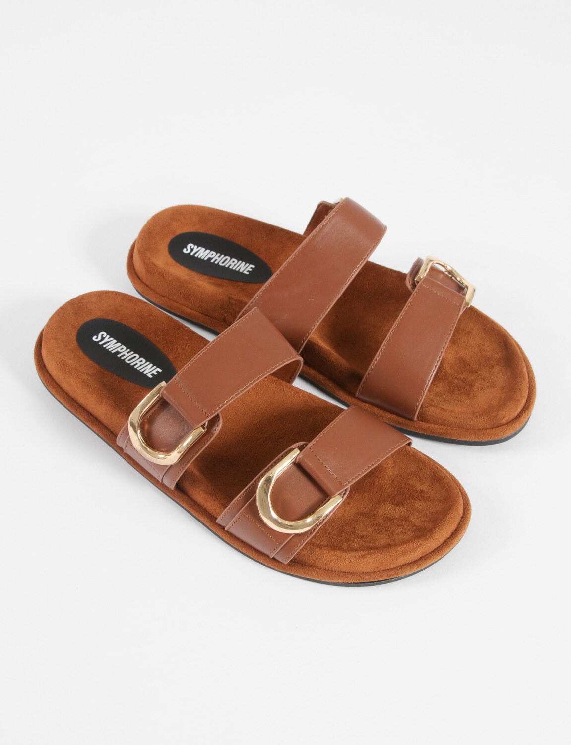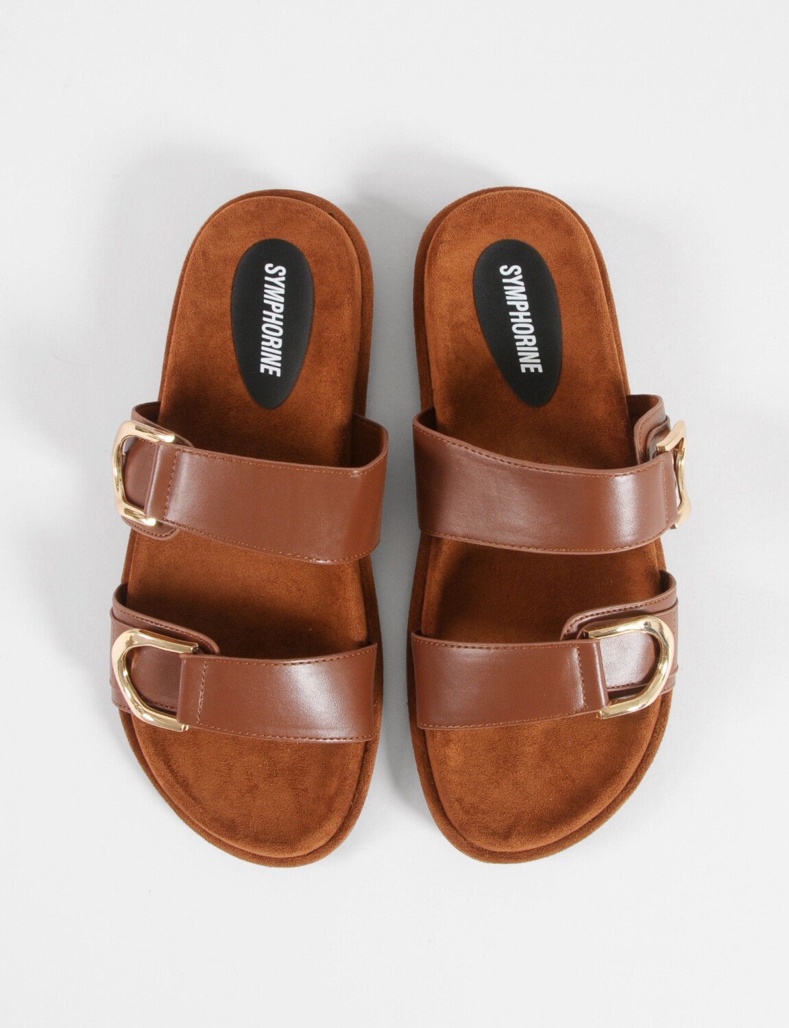 - Sandalia con tiras y dos hebillas metálicas.