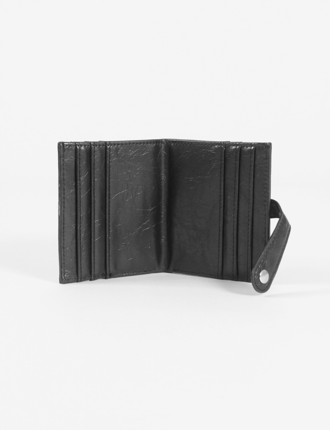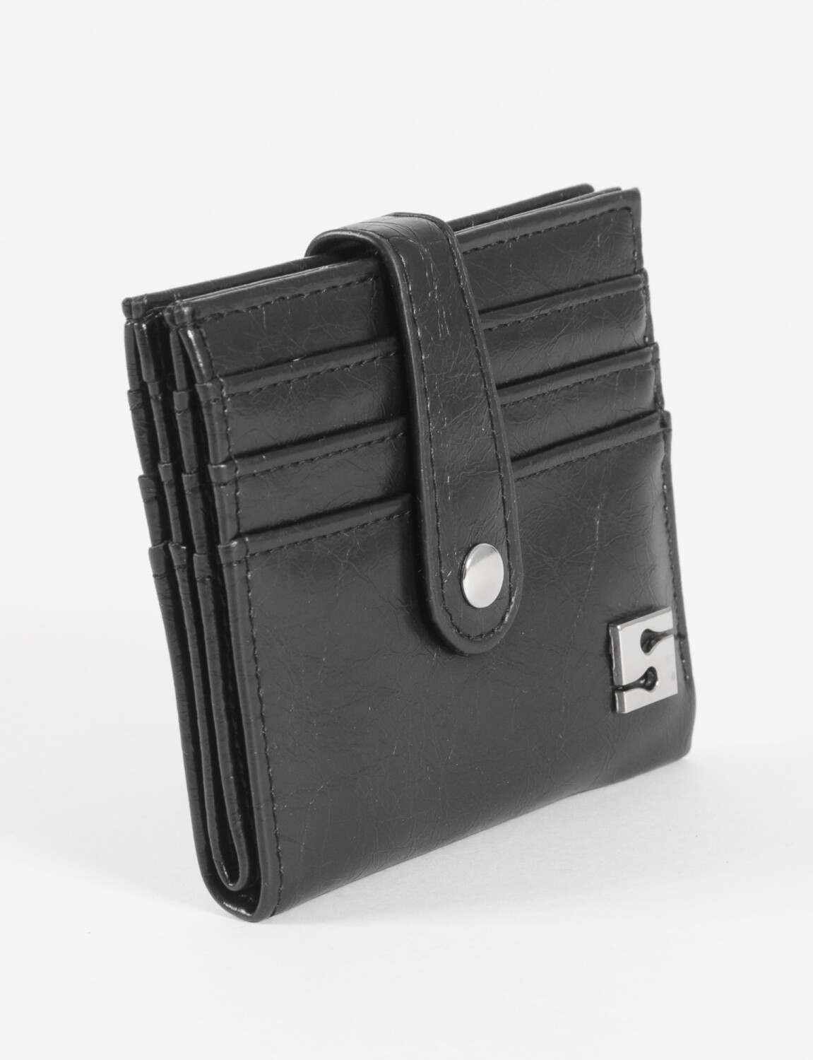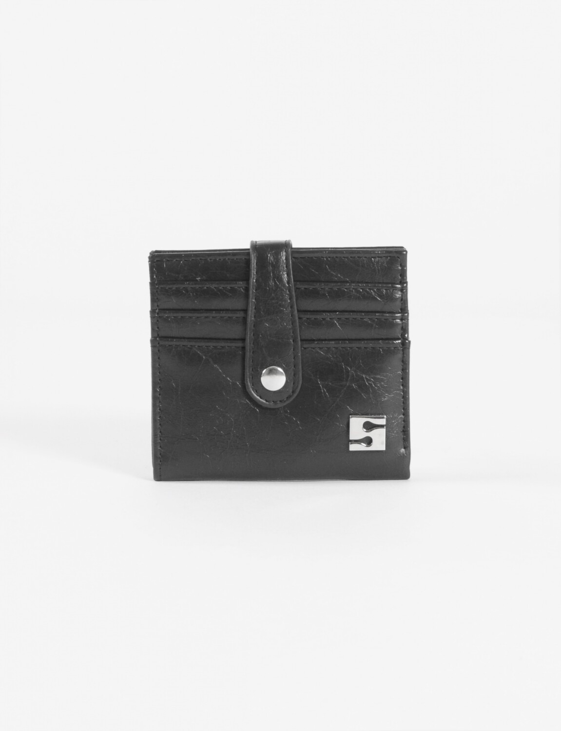 - Tarjetero flap shiny en acabado brillante con espacio para múltiples tarjetas.