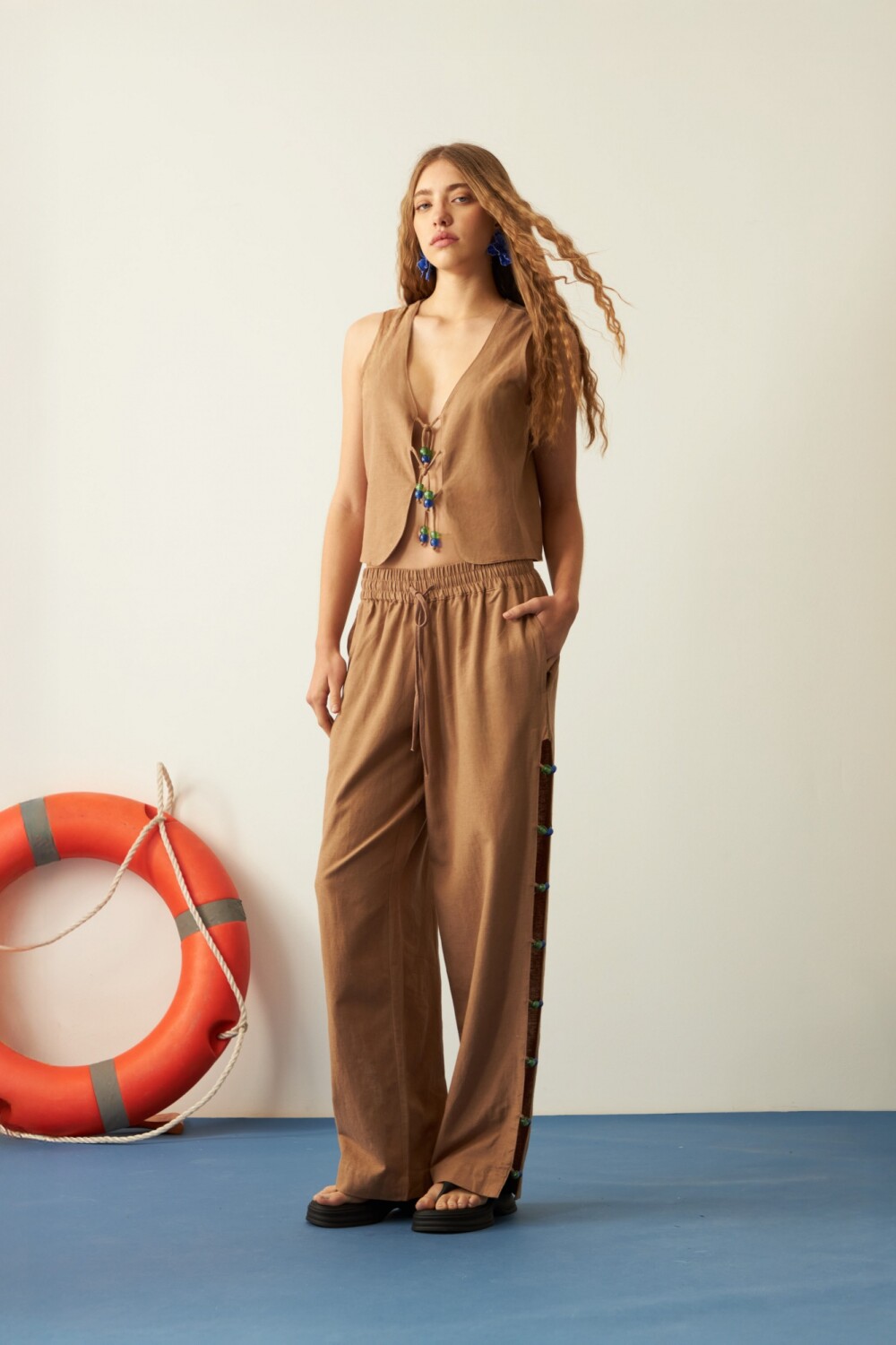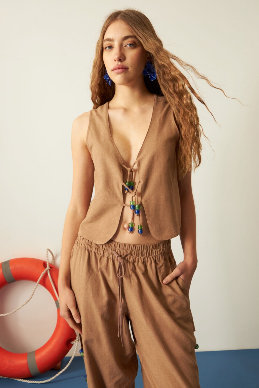 - Top de corte recto con apliques de piedras en la parte frontal.
